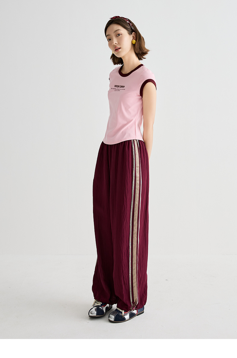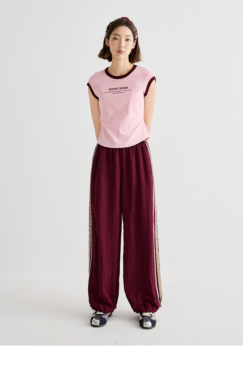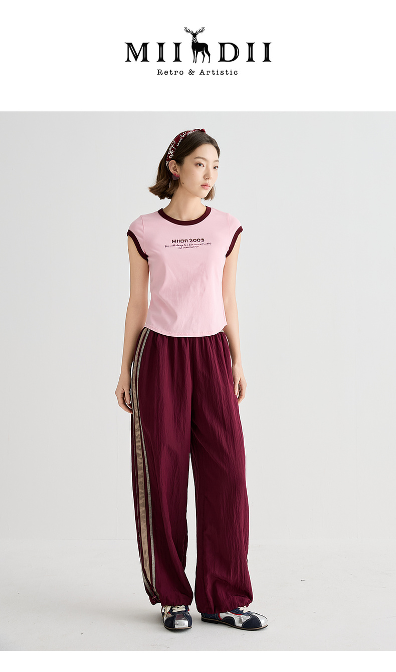 谜底T恤短袖女2025夏季新品休闲日常撞色紧身X型短上衣252MT0525