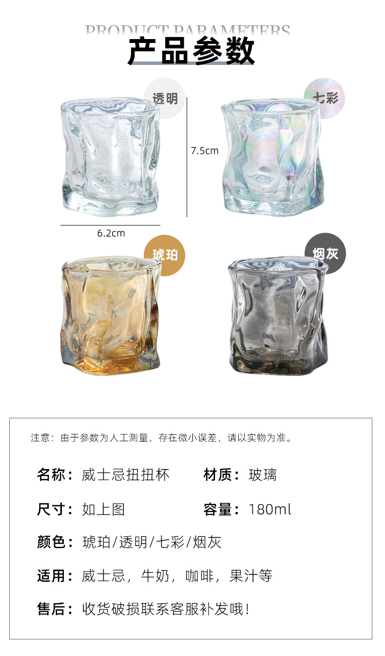 「4只装!高颜值扭扭杯」威士忌酒杯小微醺玻璃杯 居家日用水杯酒杯杯子餐饮用具