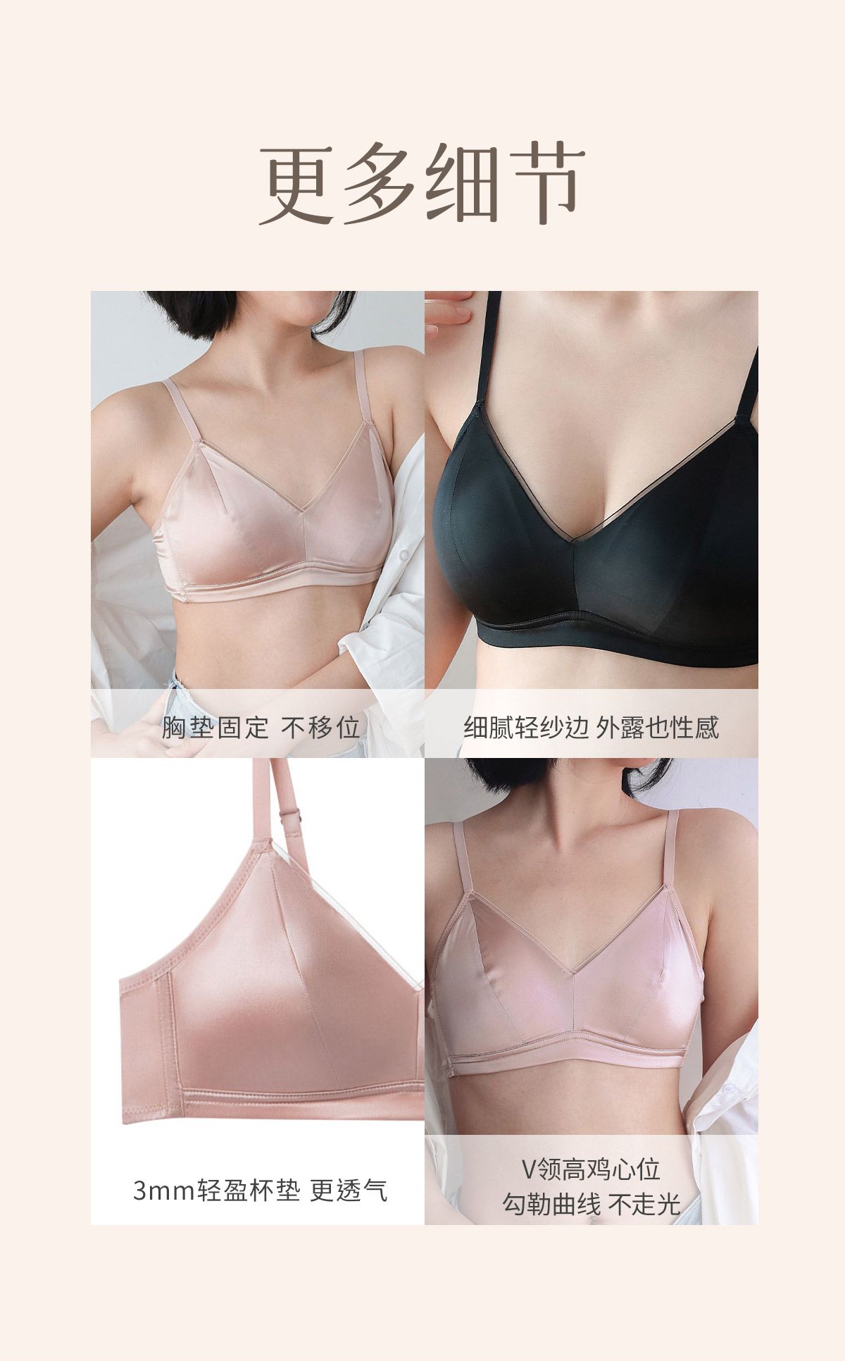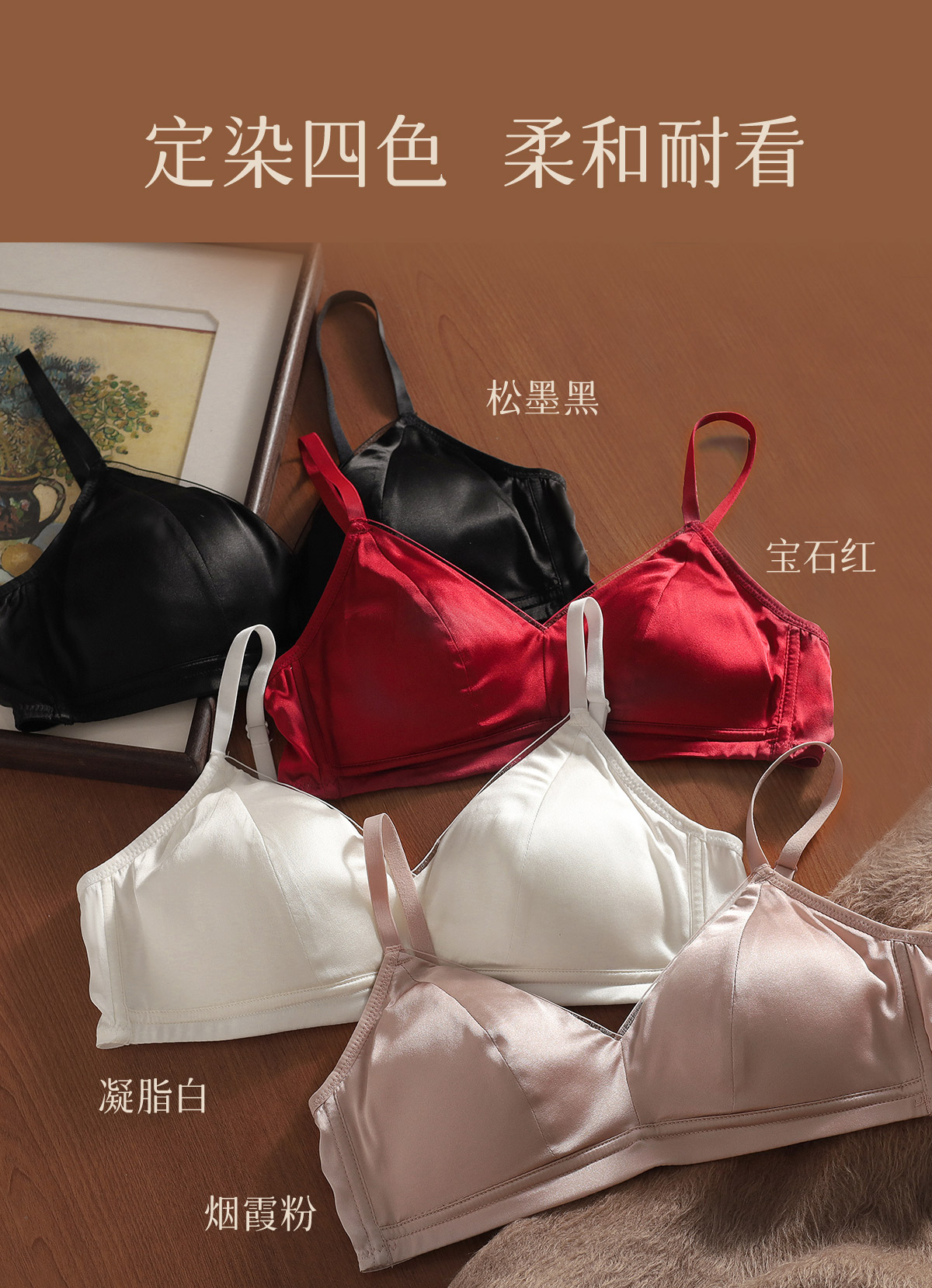 【林小眠·真丝轻法式内衣/套装】6A级19姆米重磅桑蚕丝,改良法式版型,4色可选,亲肤舒适无钢圈