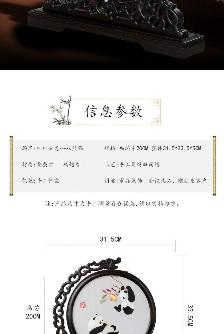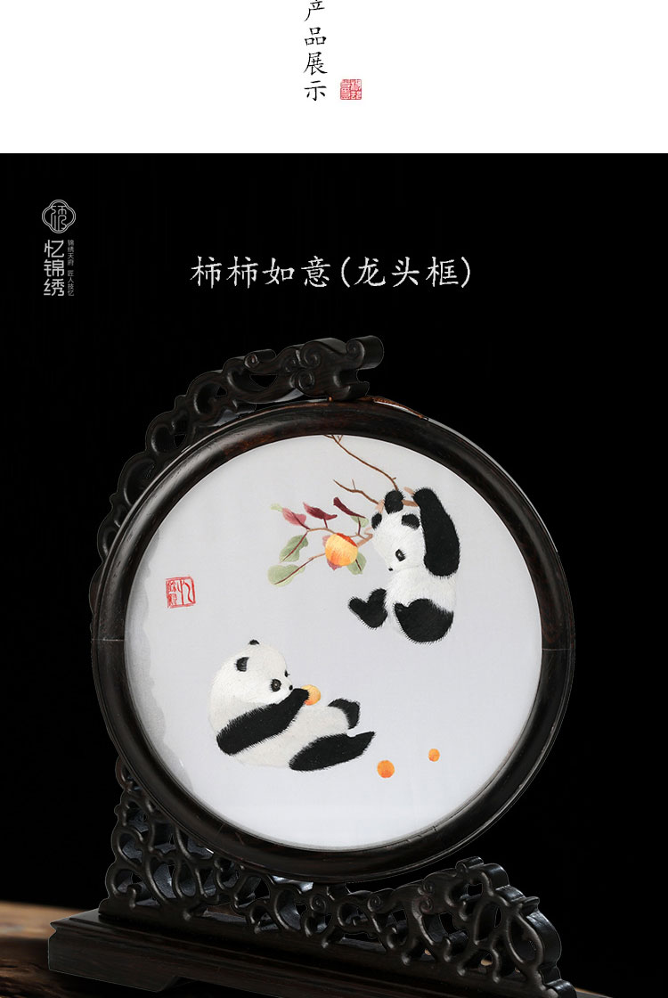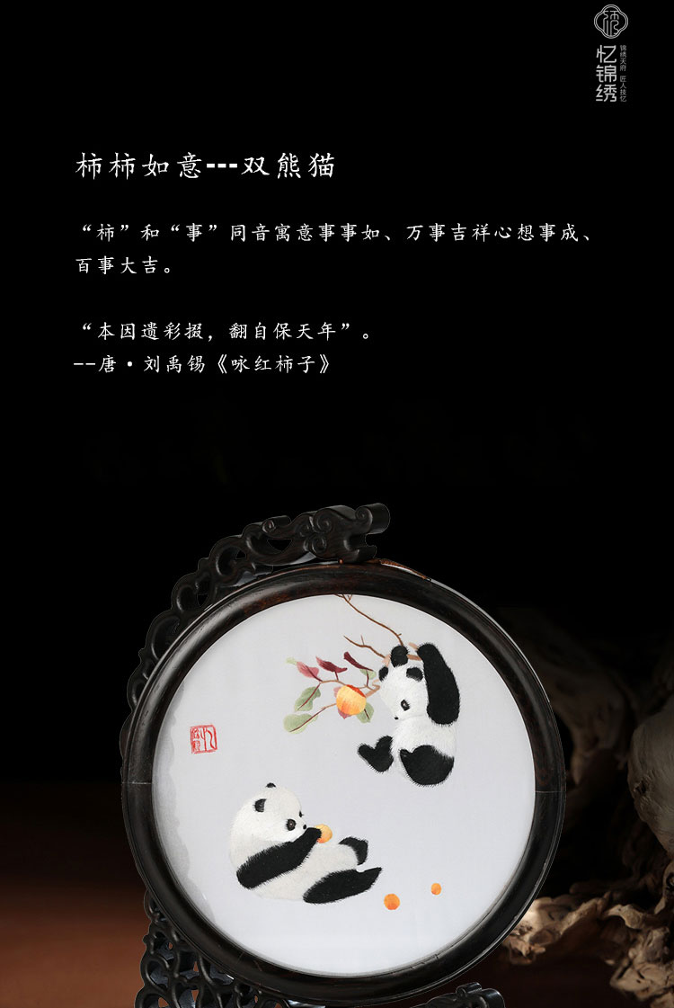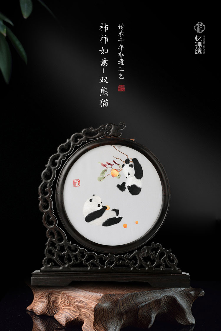 蜀绣柿柿如意双熊猫非遗手工工艺