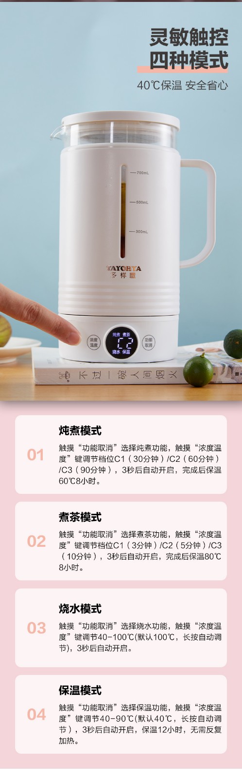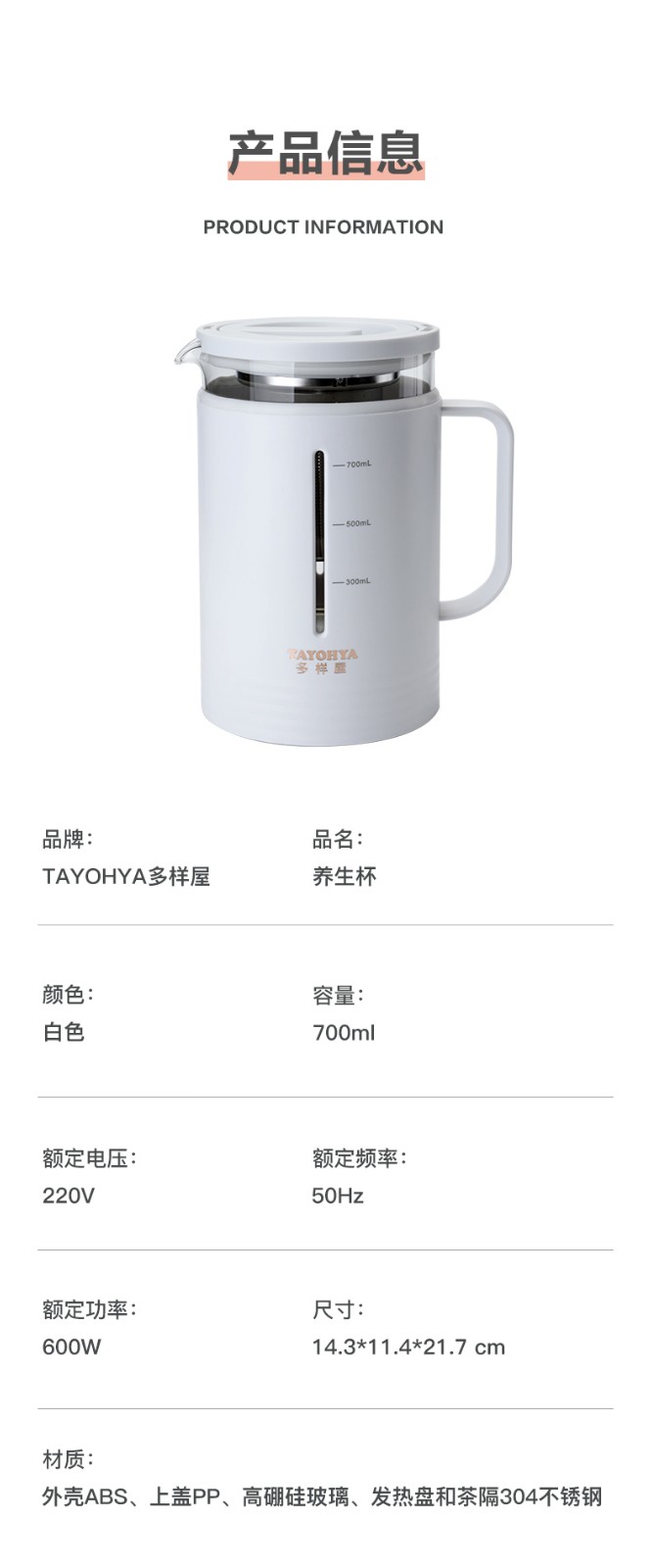 【多样屋专柜】养生杯家用多功能智能办公室小型花茶杯烧水壶全自动煮茶器 DG-HP02/白700ml