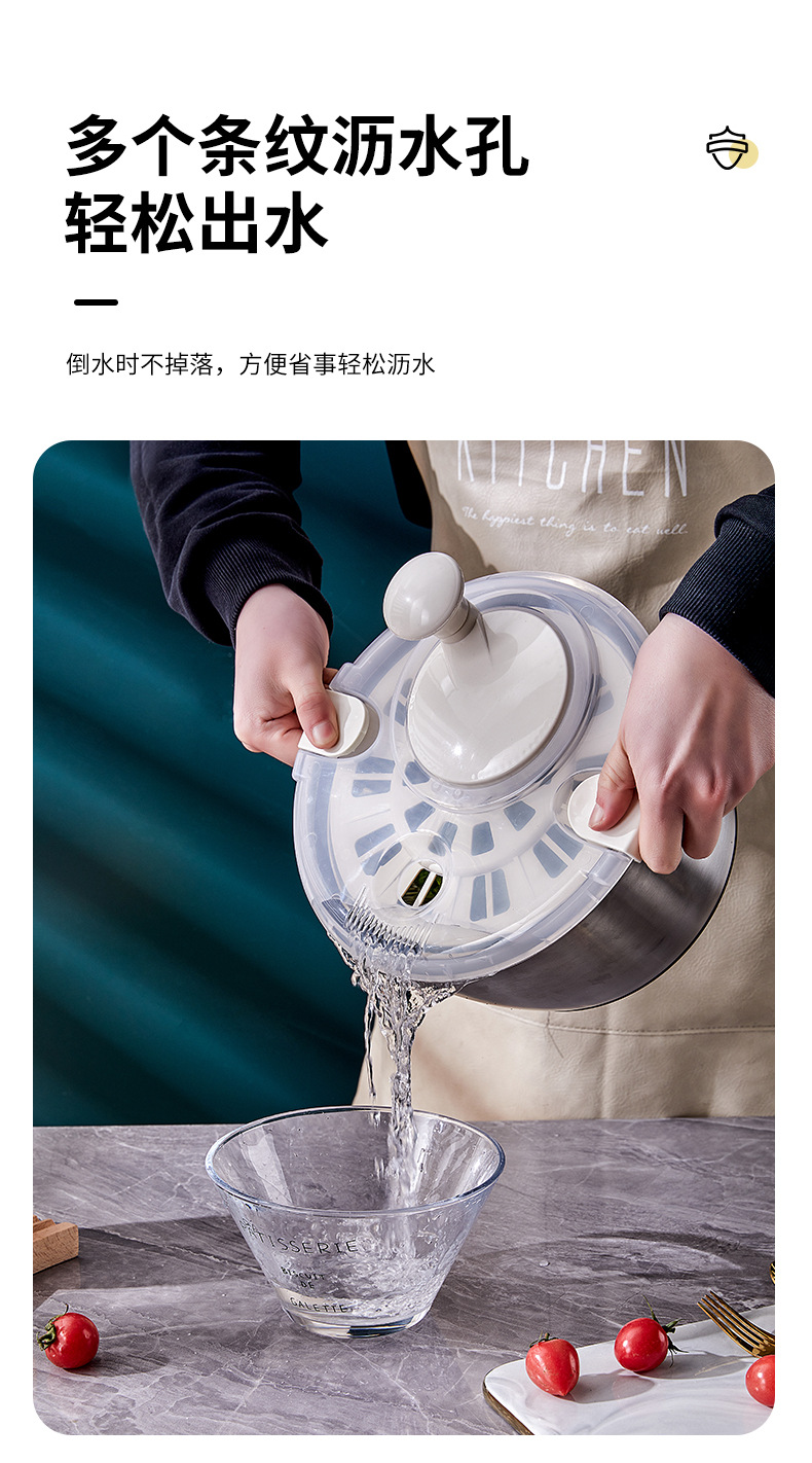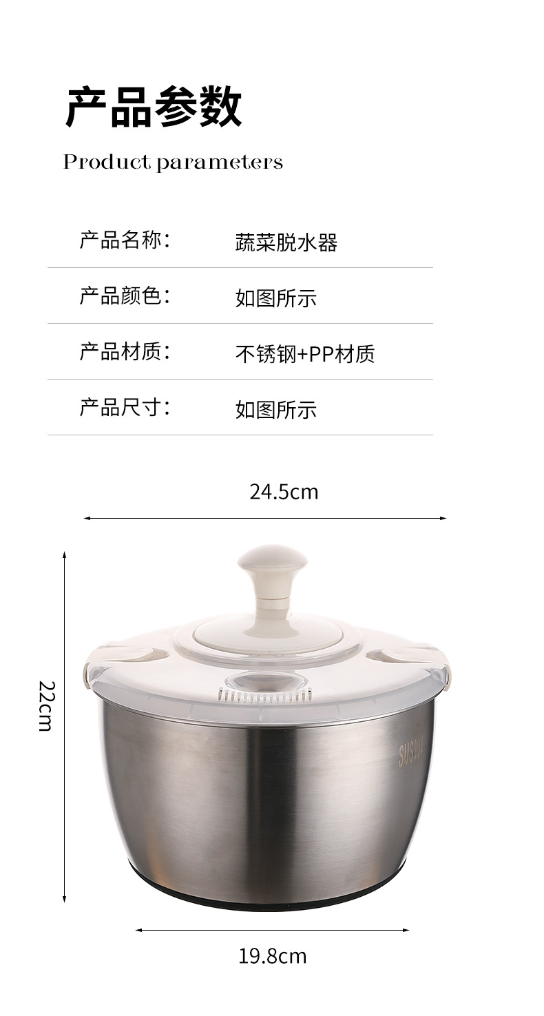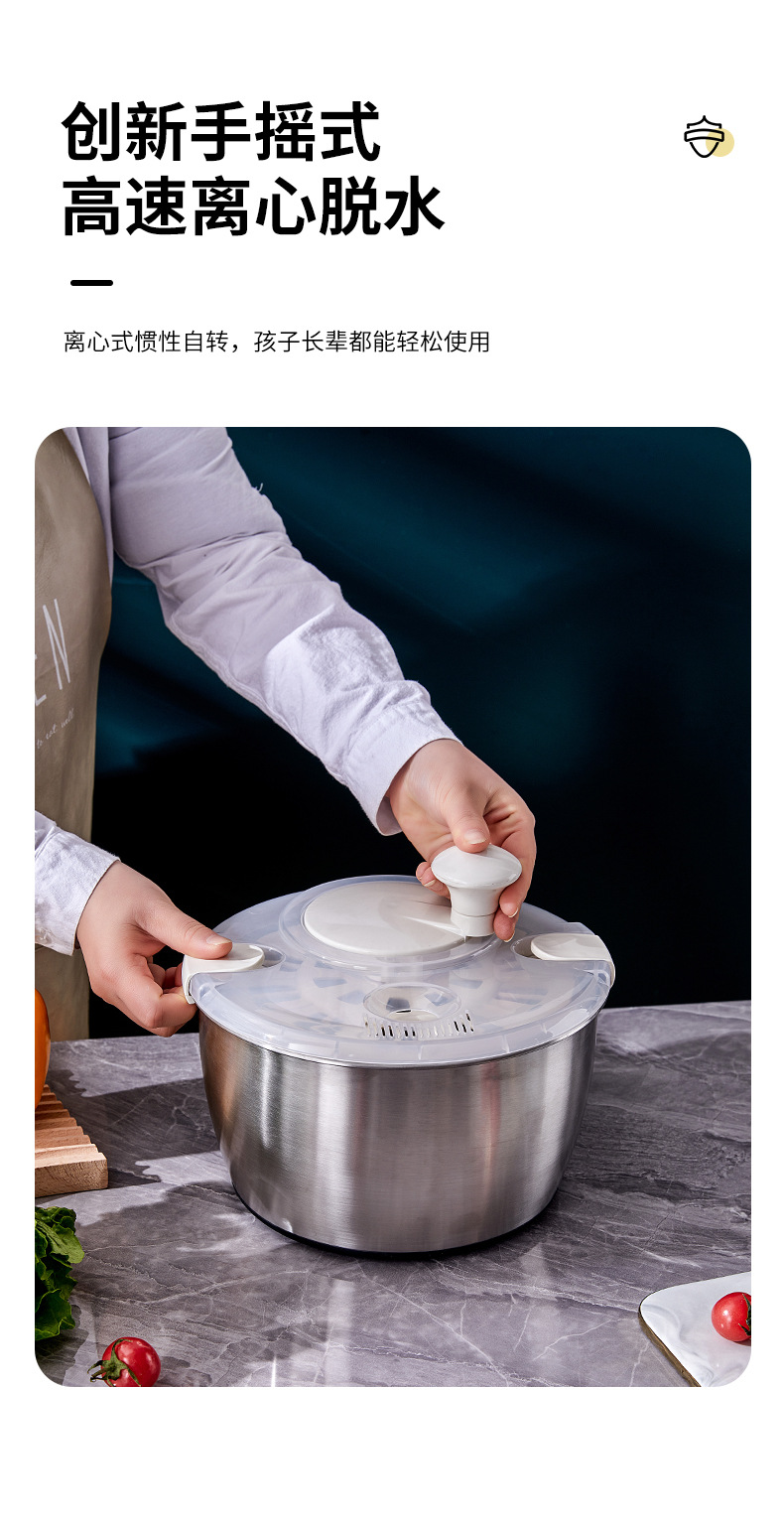 不锈钢蔬菜沙拉脱水器手动旋转沥水篮家用果蔬甩干机洗菜脱水神器