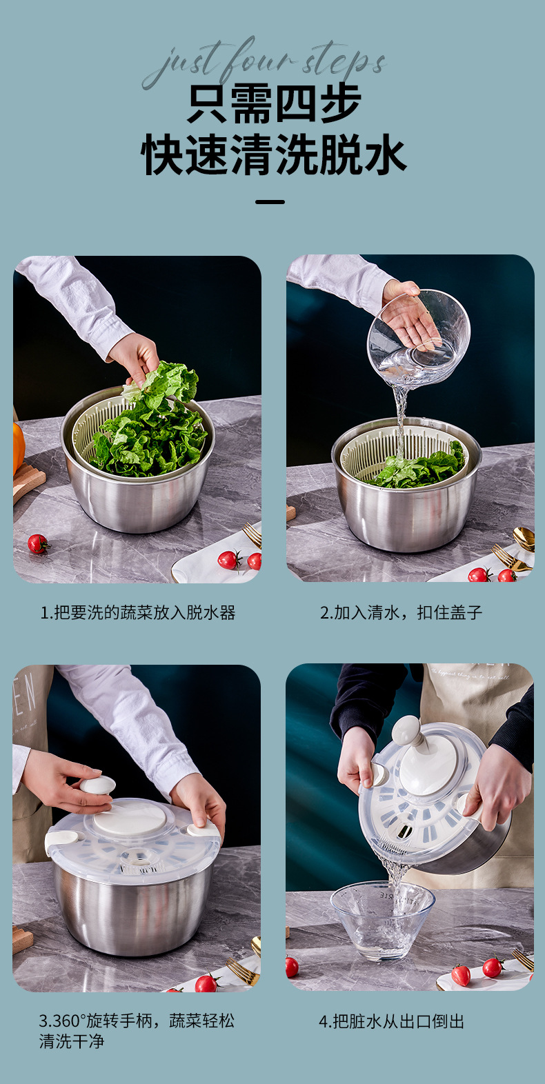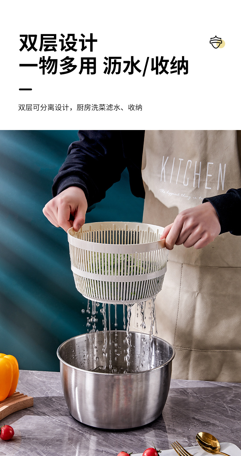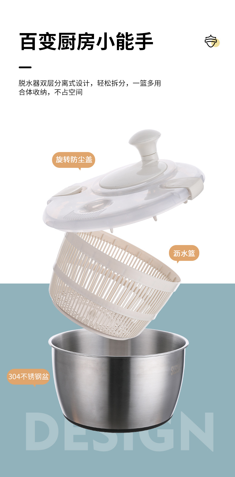 不锈钢蔬菜沙拉脱水器手动旋转沥水篮家用果蔬甩干机洗菜脱水神器