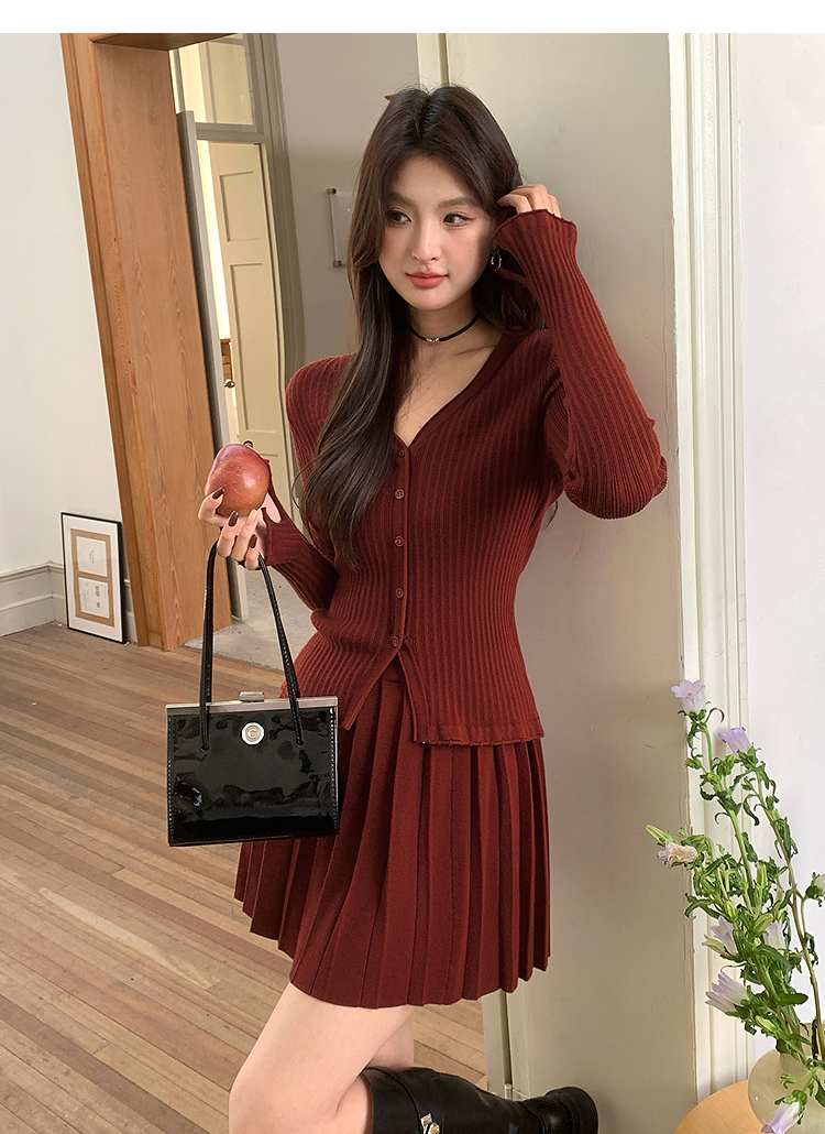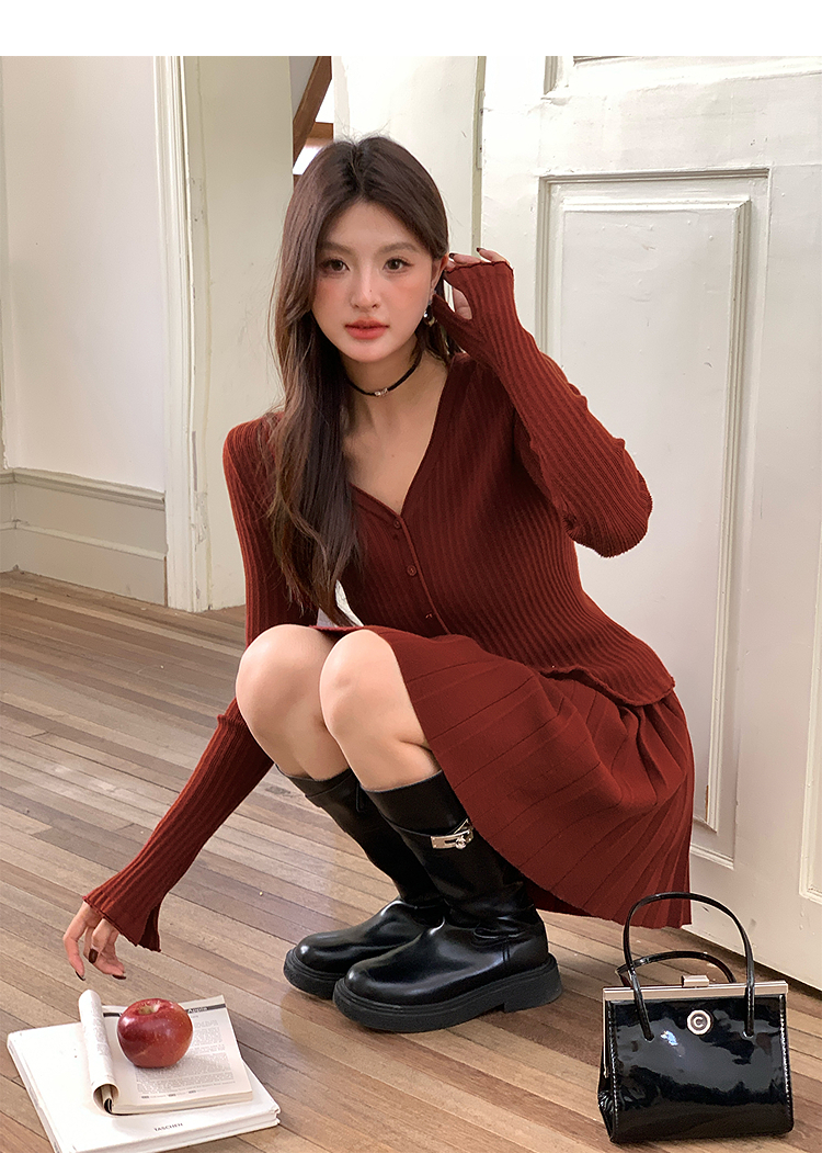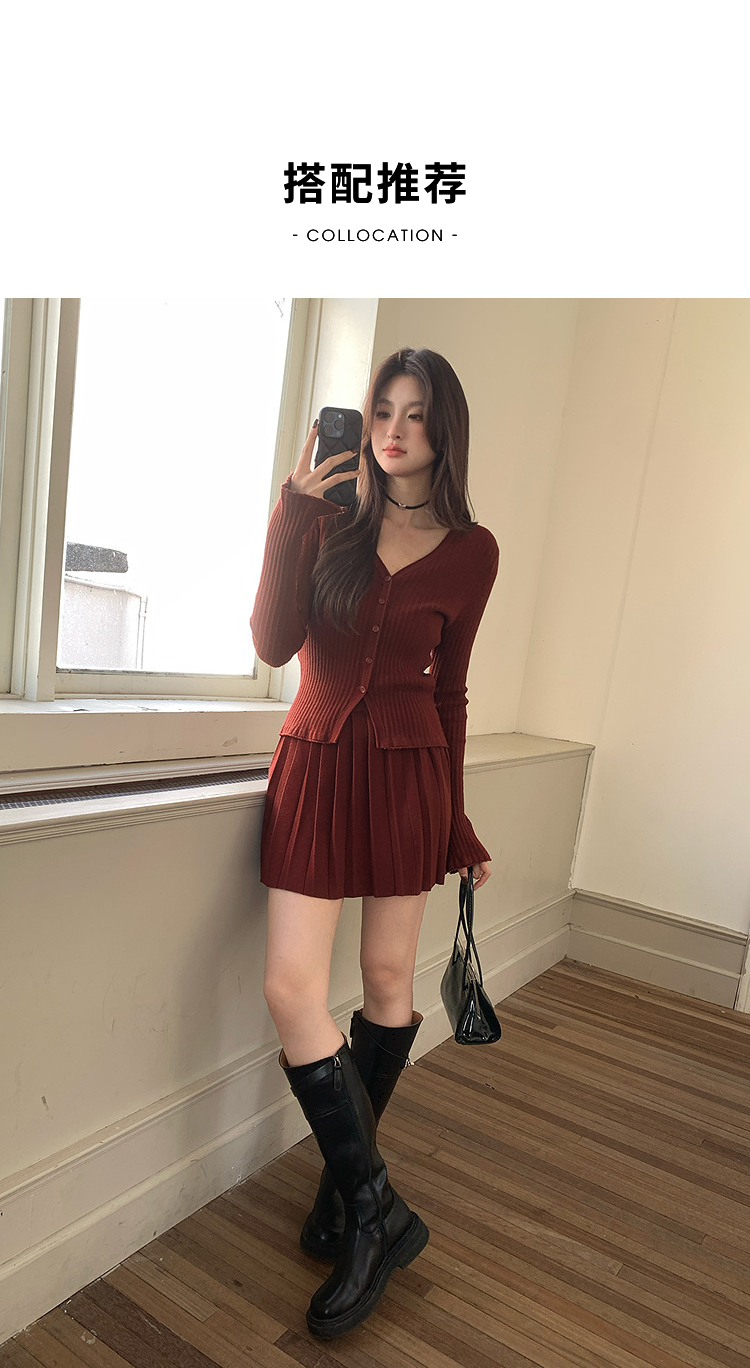 西遇红色百褶裙女新款A字高腰松紧腰太阳褶短款半身裙D3542427