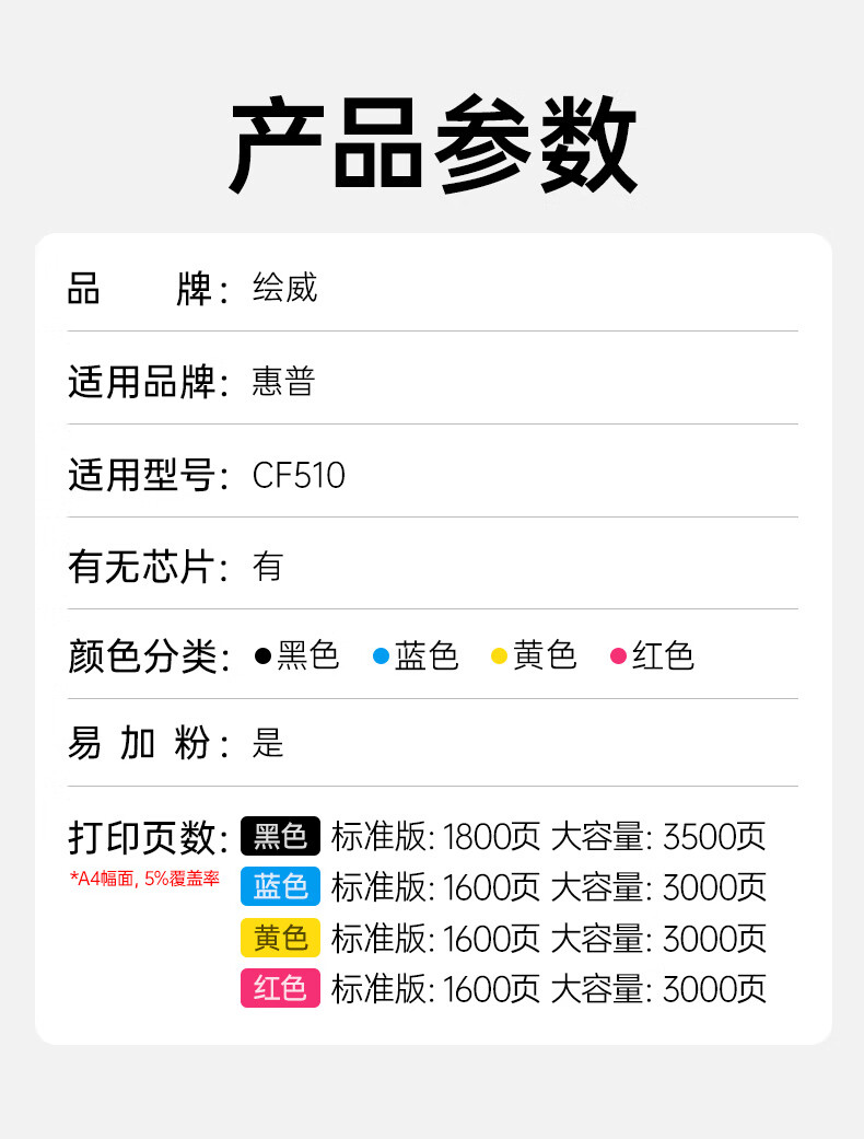 绘威cf510a硒鼓 6600页-四色易加粉 适用惠普m154a硒鼓 m180n硒鼓 m181fw打印机墨盒 m154nw粉盒 hp204a硒鼓 带芯片四色套装