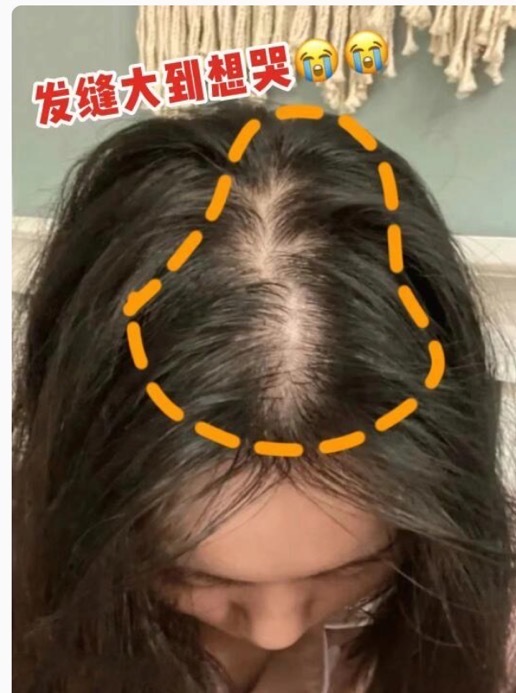 发缝更是小溪变成大河,和朋友自拍那头皮白晃晃的都刺眼..