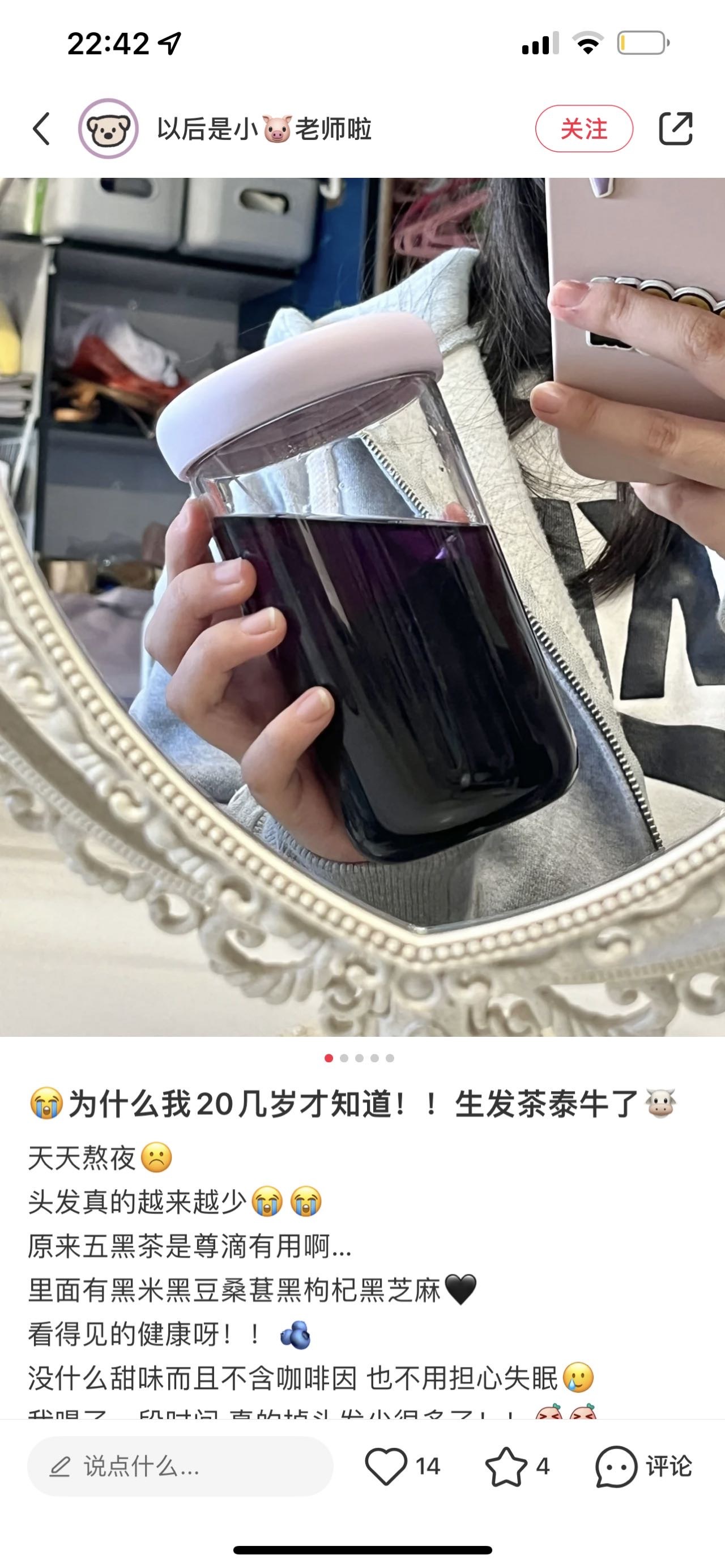 来看看小红书博主是这样说的:“我每天都会坚持泡,平时不爱喝水,有了这个五黑茶,一天一泡,不仅皮肤好了,睡眠也好了,现在头发黑黝黝的,真的很了~”