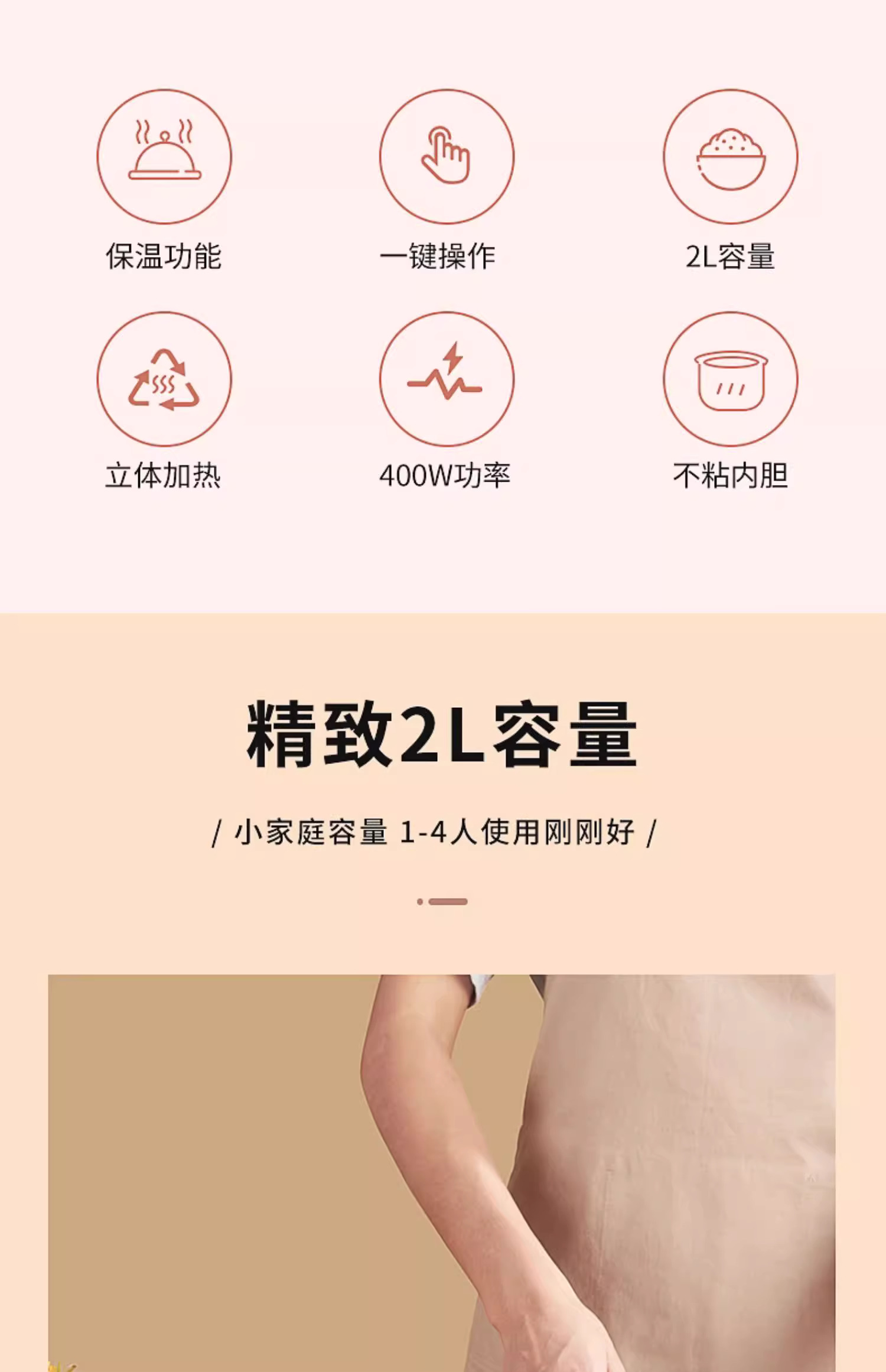 卡屋迷你2L小型电饭煲家用新款饭煲智能家用