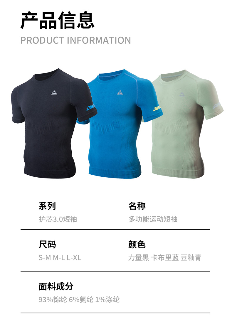 速力达护芯3.0健身男户外跑步透气紧身衣春速干压缩短袖女