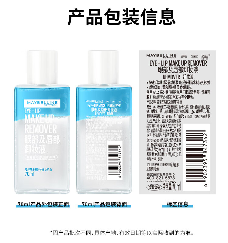 美宝莲眼部及唇部卸妆液卸妆油卸妆水 温和深层清洁70ml 1211737