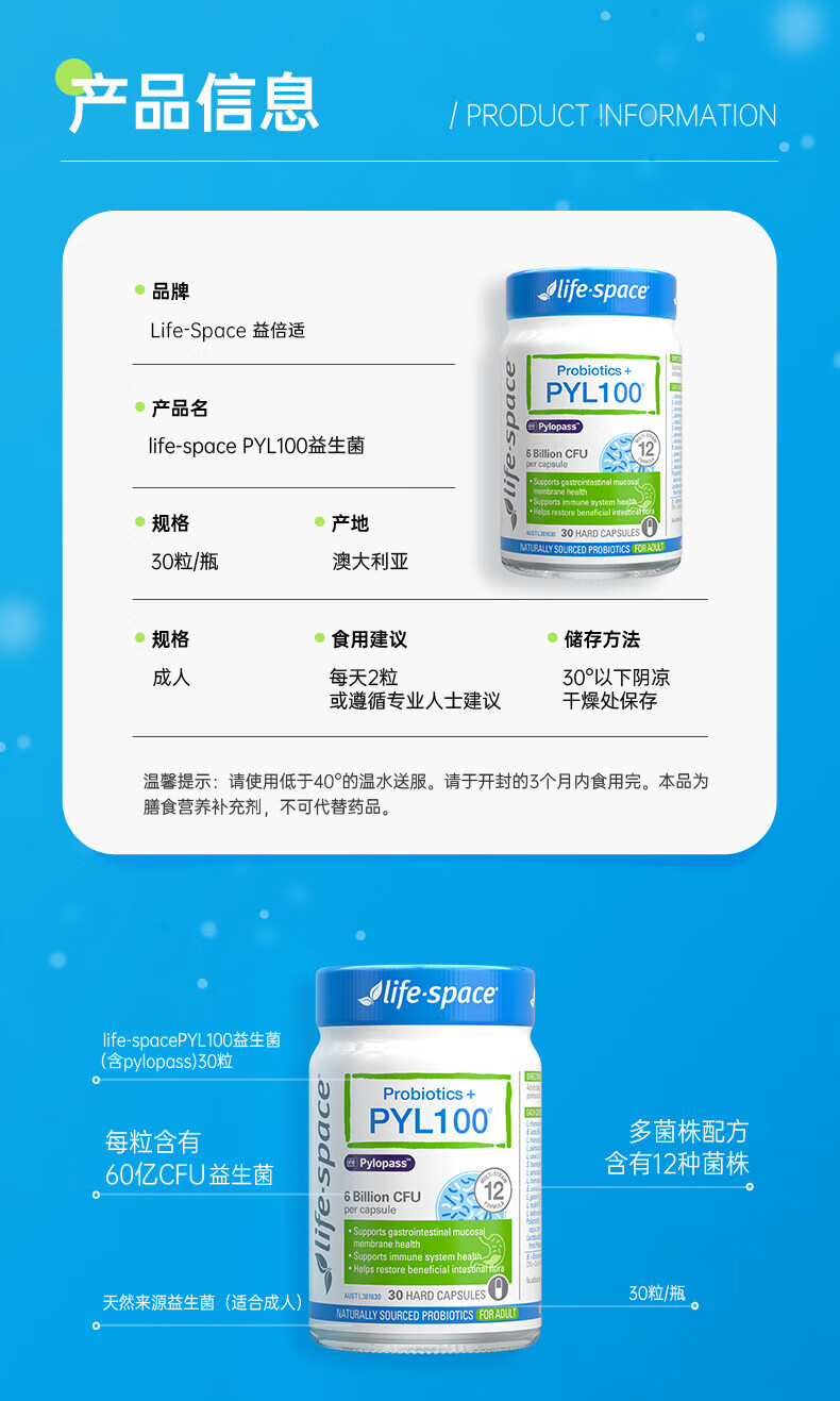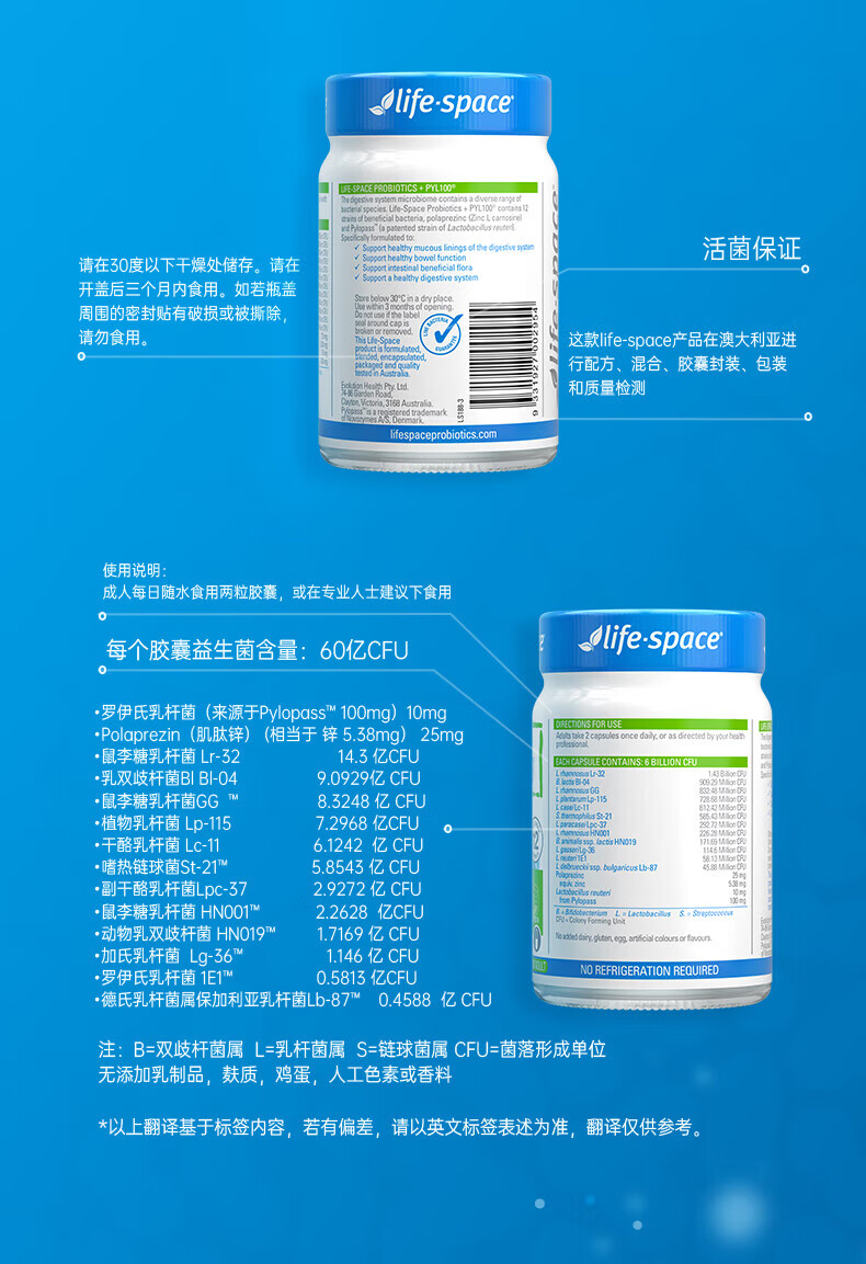 【保税仓直发】Life-Space PYL100益生菌胶囊30粒