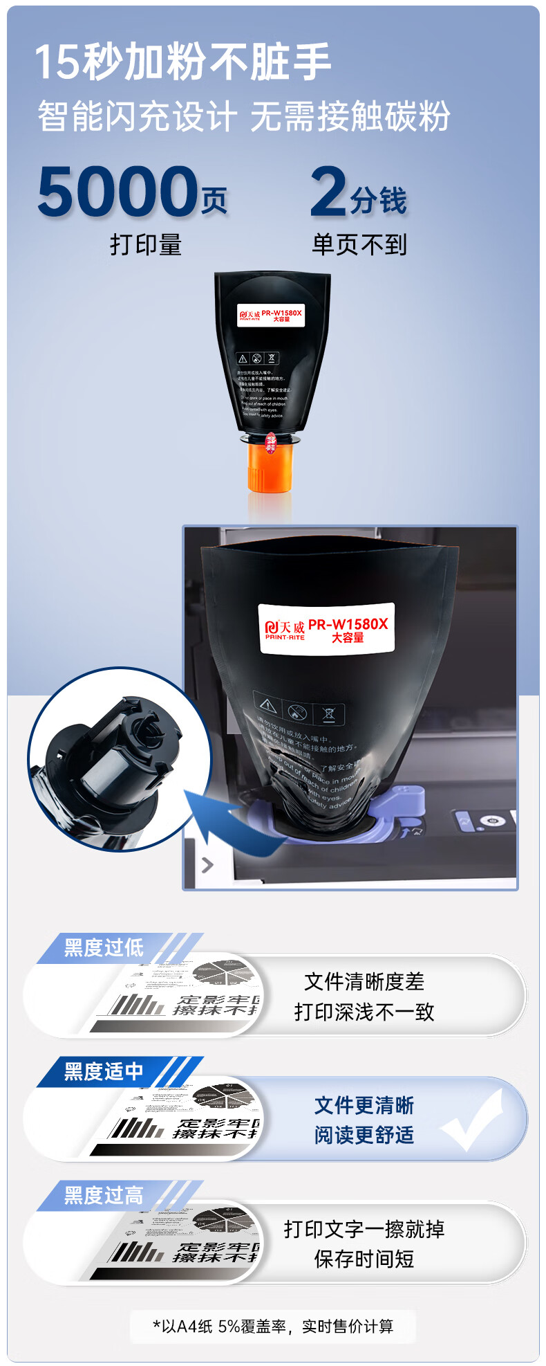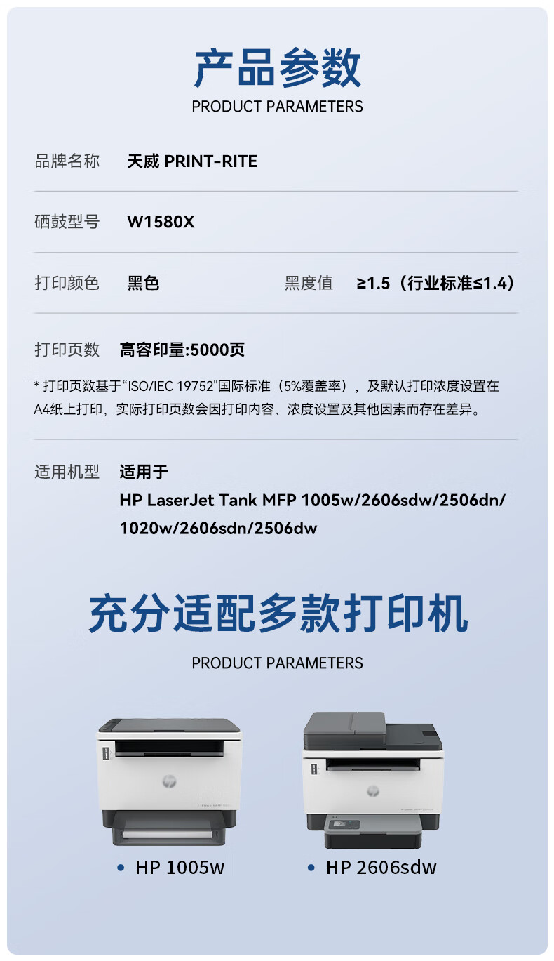 天威(PRINT-RITE)天威天威w1580x碳粉适用惠普2606sdw粉盒 2606dw 2606dn 2606sdnTank 1020/w 1005w 158a打印机墨粉