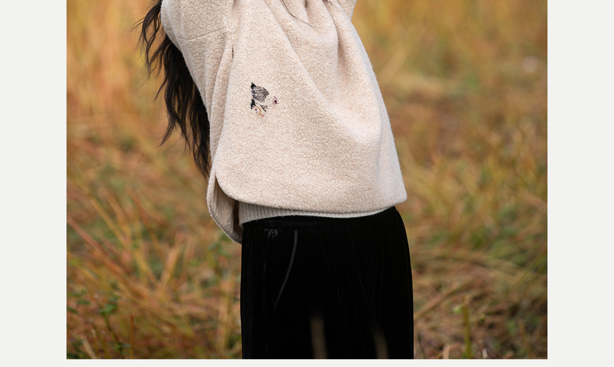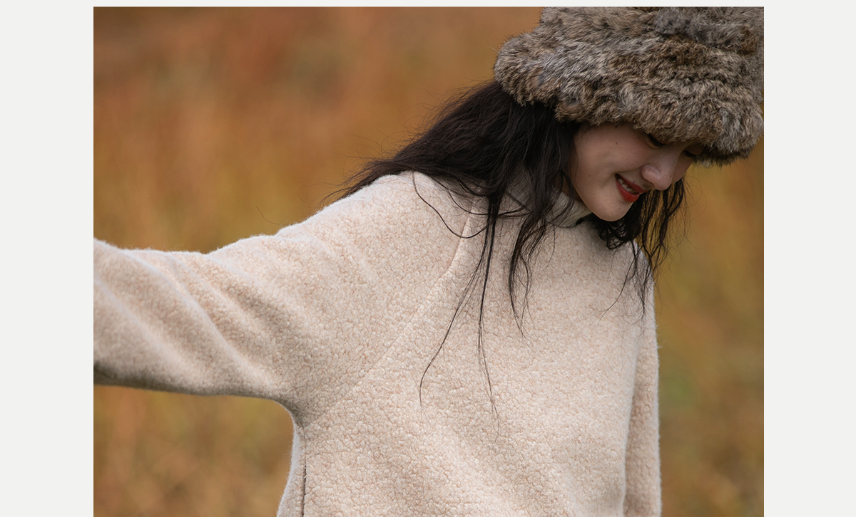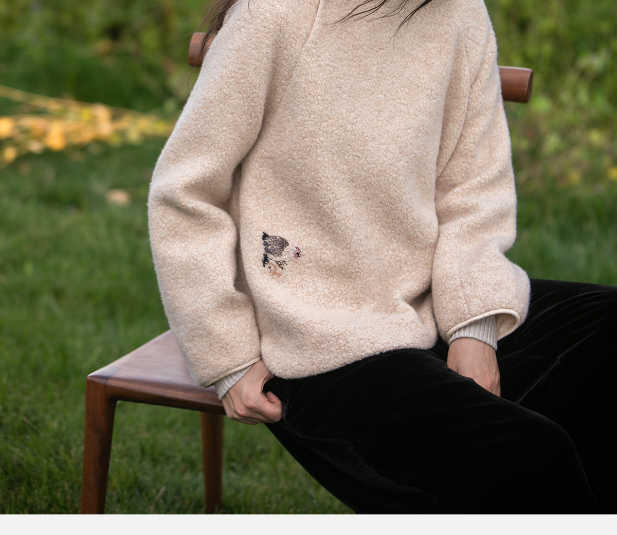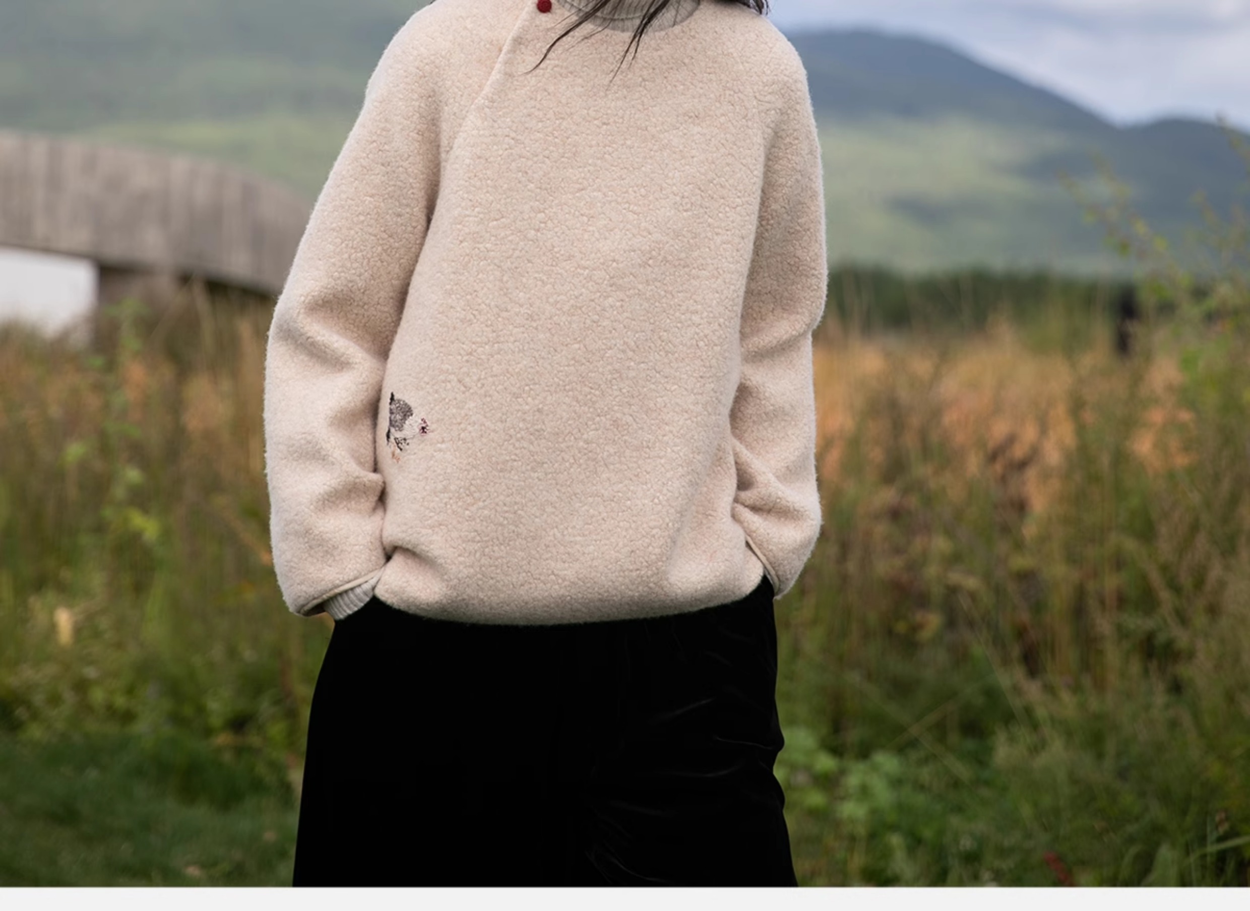 牧衣游原创 羊毛混纺羊羔毛套头衫女冬保暖简约宽松毛绒上衣 雾里