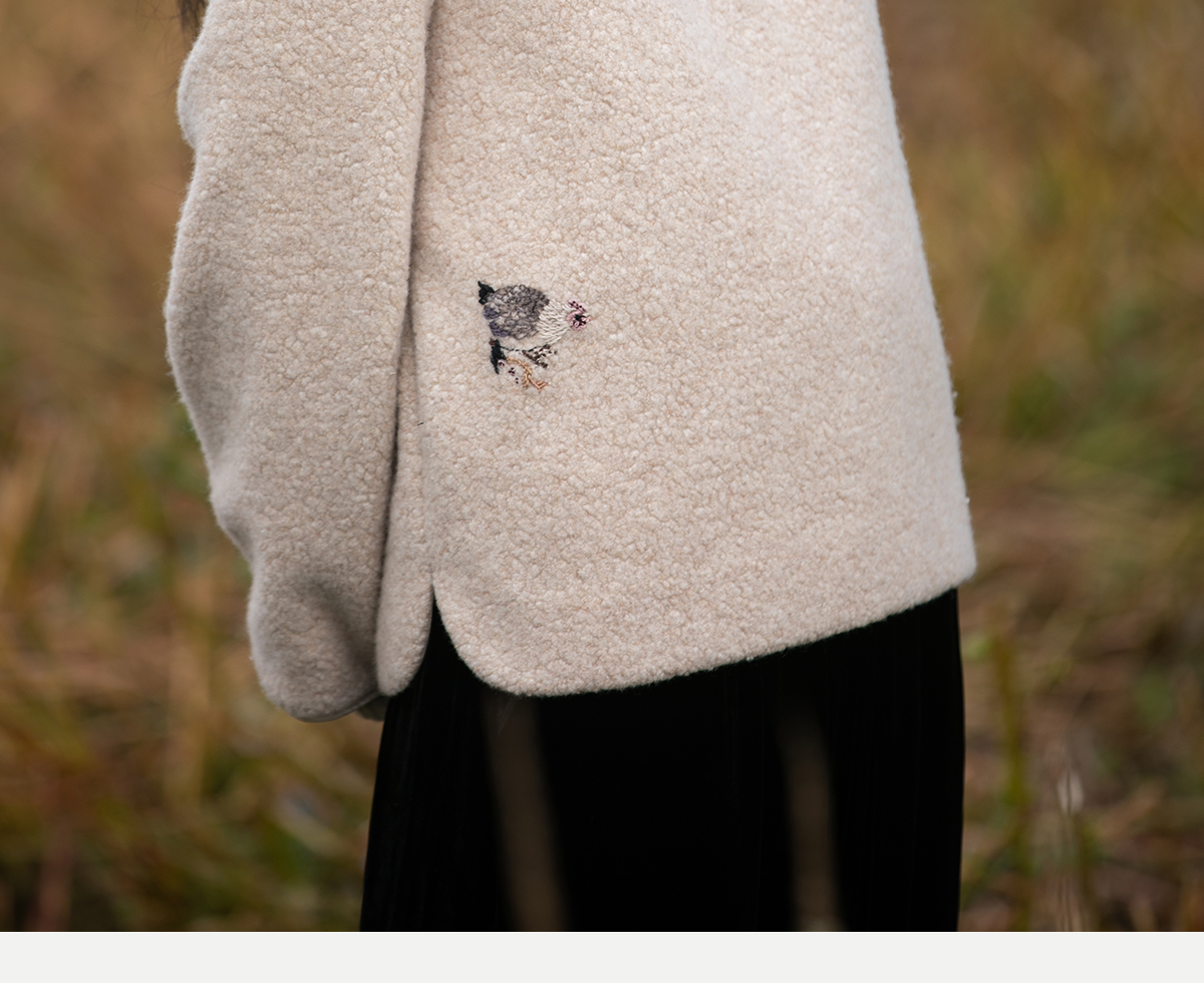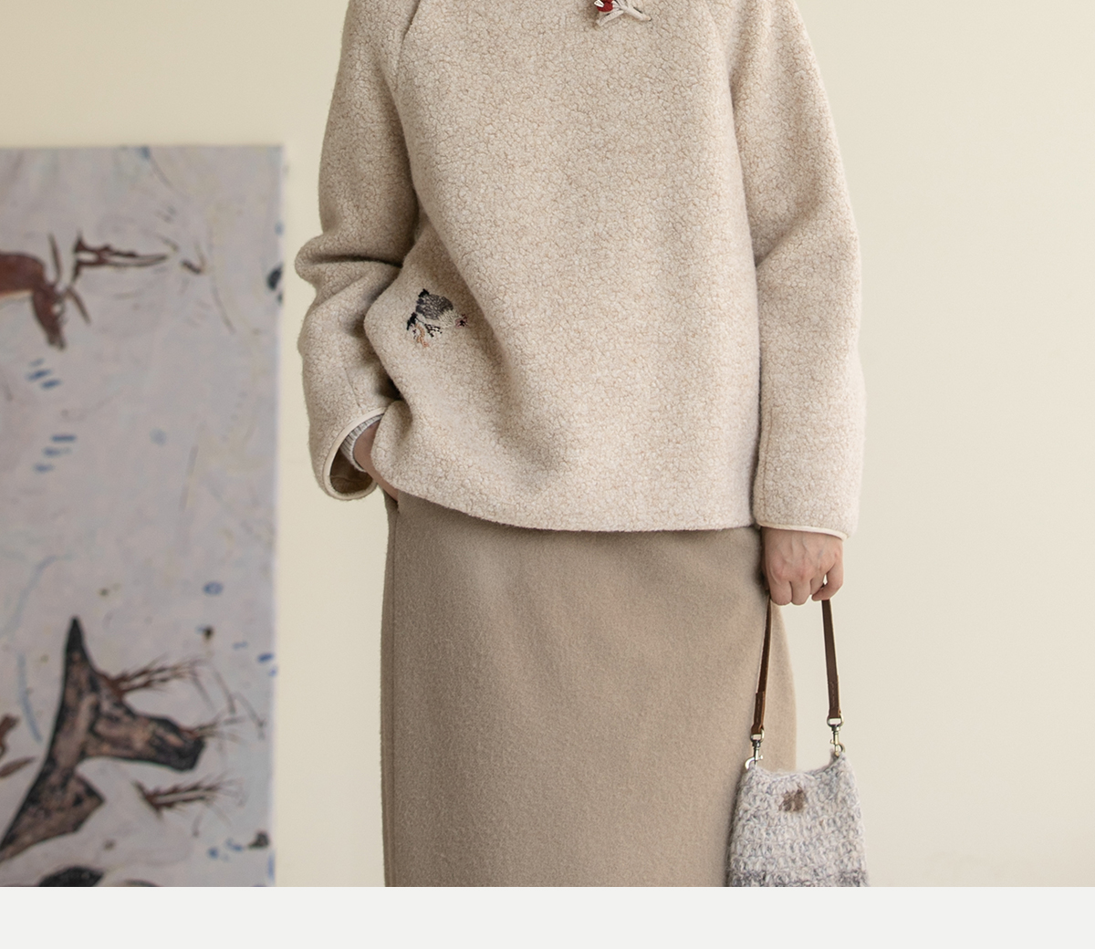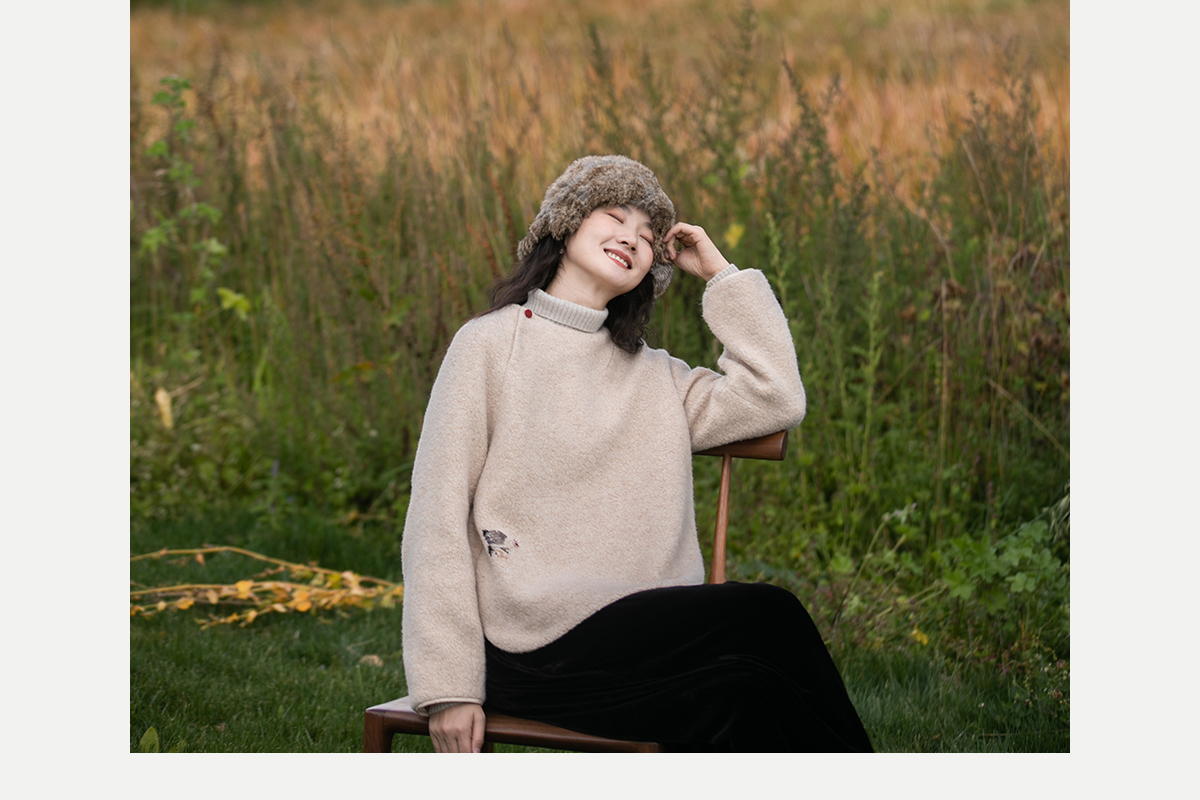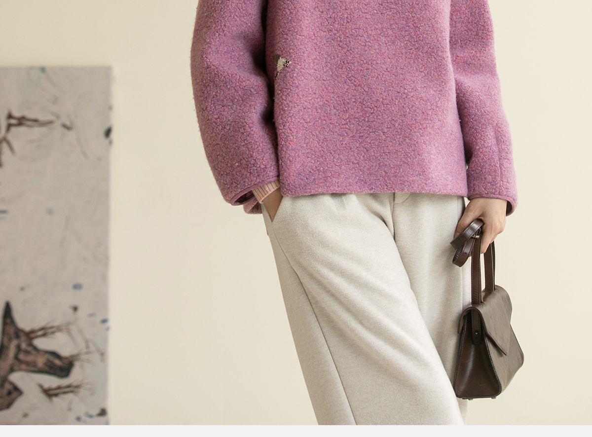 牧衣游原创 羊毛混纺羊羔毛套头衫女冬保暖简约宽松毛绒上衣 雾里