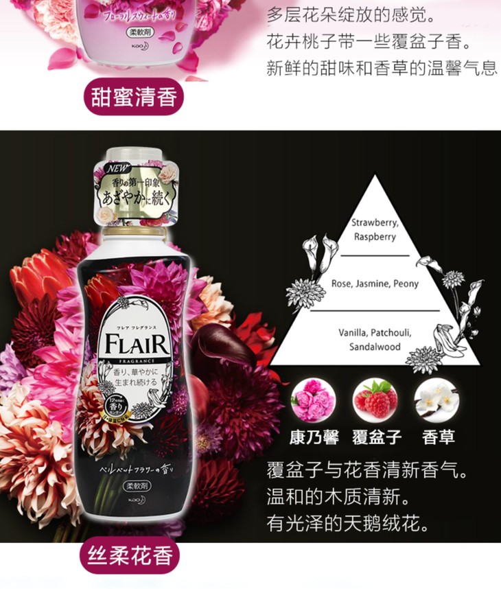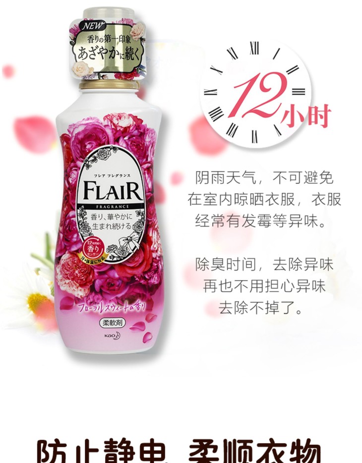 日本进口花王FLAIR衣服柔顺剂柔软留香抗皱抗静电除异味 多味道可选