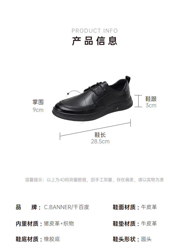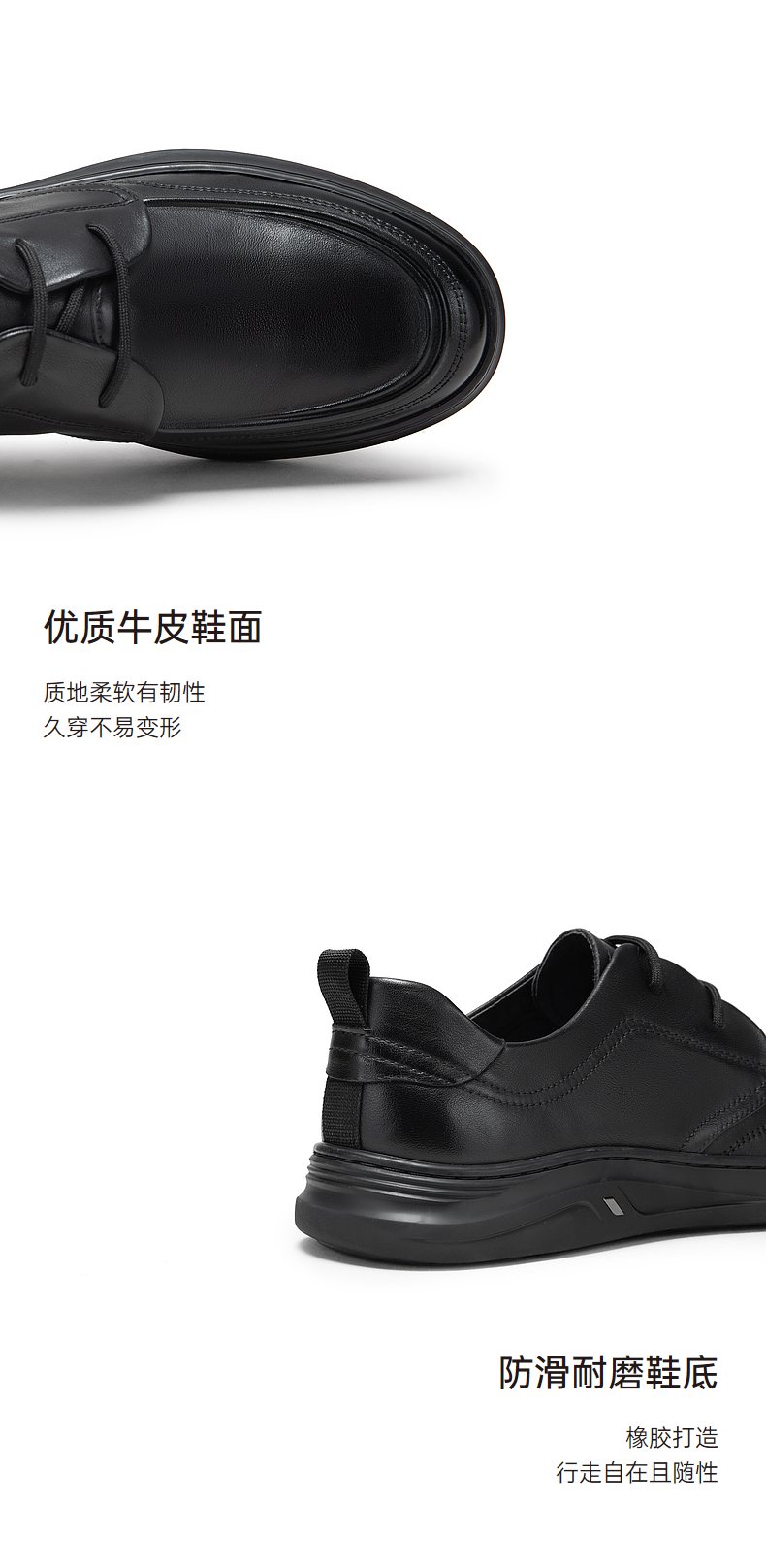 千百度男鞋商务休闲皮鞋春季百搭英伦风正装男士上班大头皮鞋A24423812