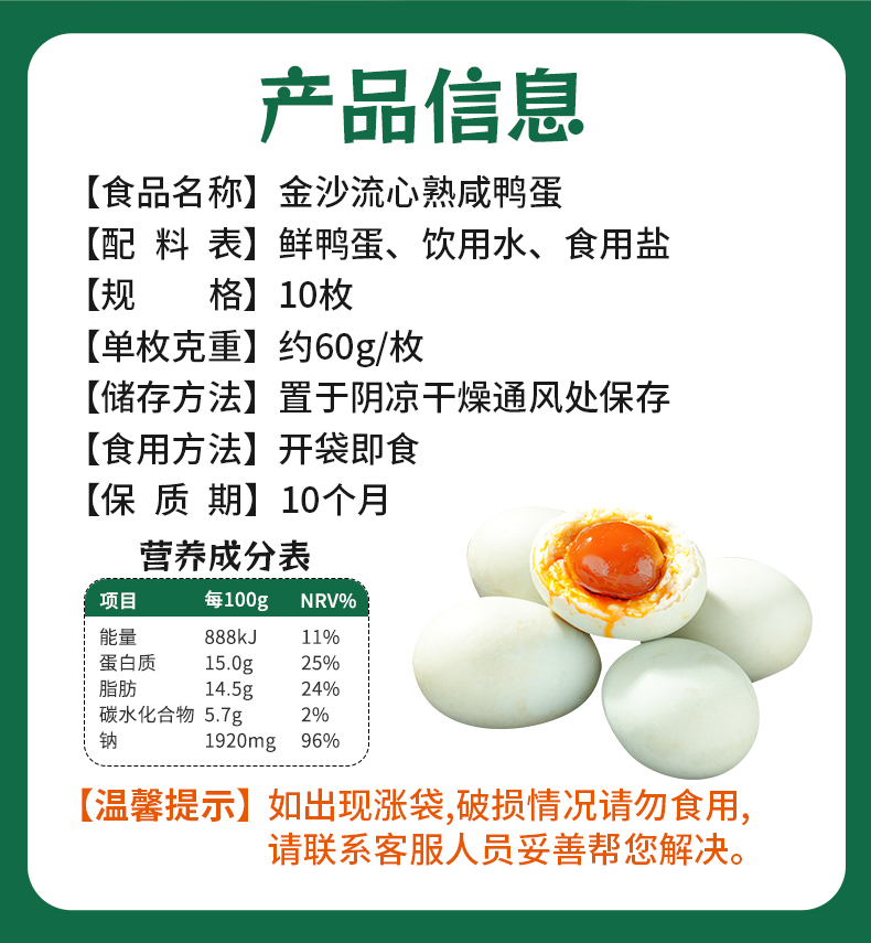 【杨博士自营 熟咸鸭蛋】金沙流心 红油 熟咸鸭蛋 咸淡适中 老少皆宜10枚装