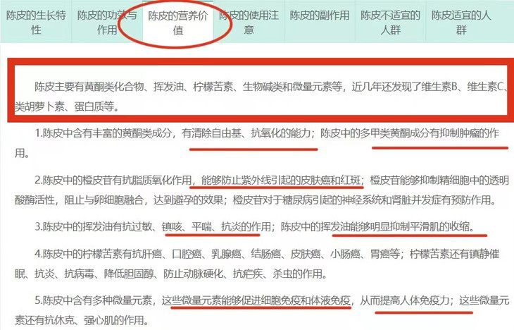 陈皮含挥发油、橙皮甙、川陈皮素、黄酮、生物碱和丰富的微量元素