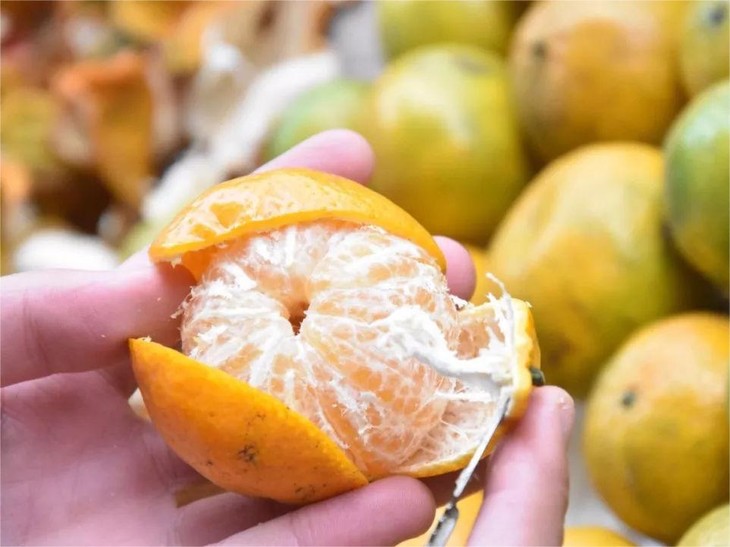力求将每一个柑果开皮后