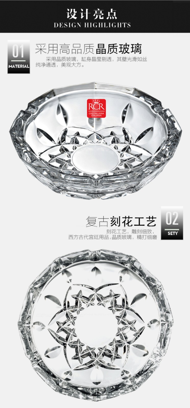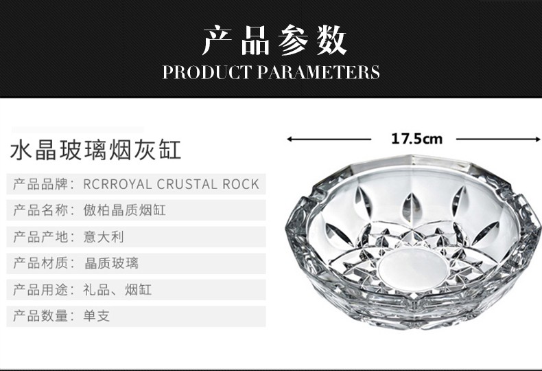 意大利进口水晶玻璃傲柏晶质烟灰缸17.5CM