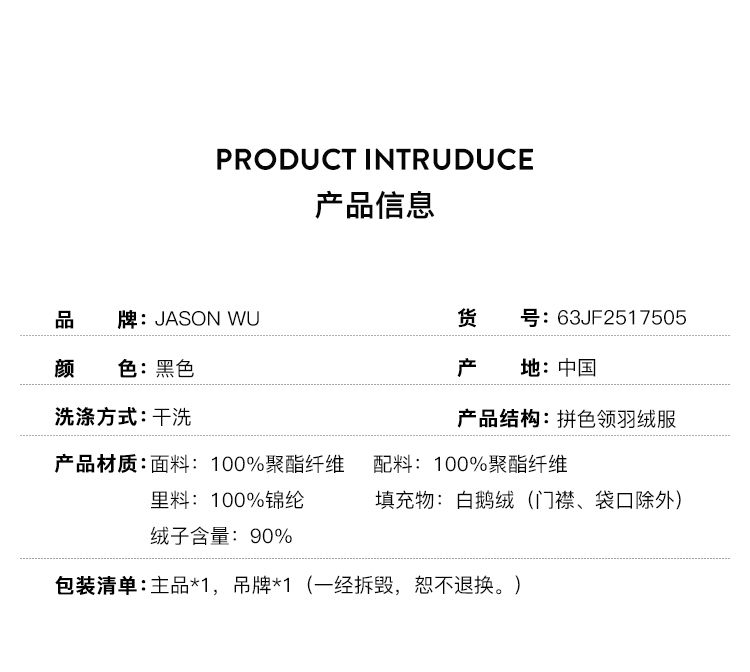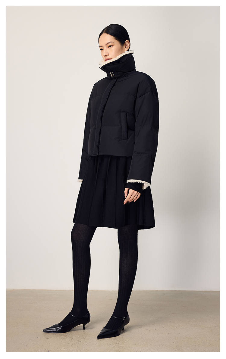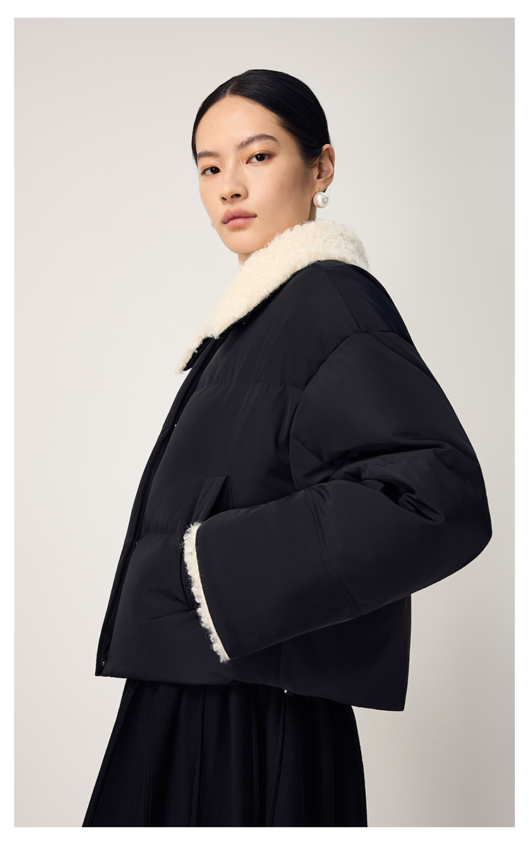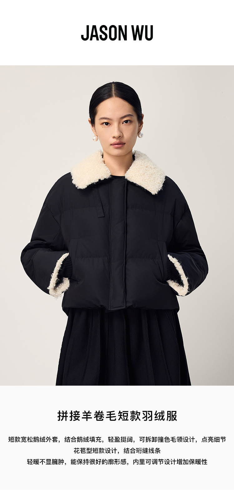 【JASON WU】2025秋冬新款时尚设计感拼接羊卷毛翻领短款羽绒服上衣女