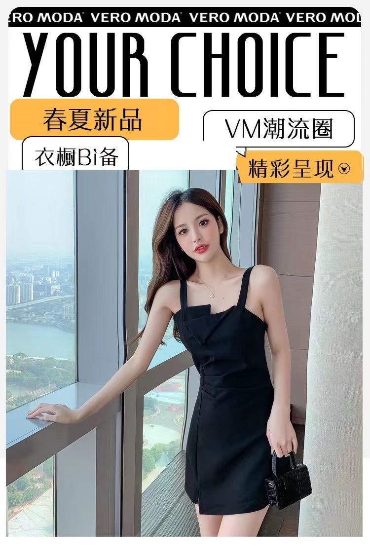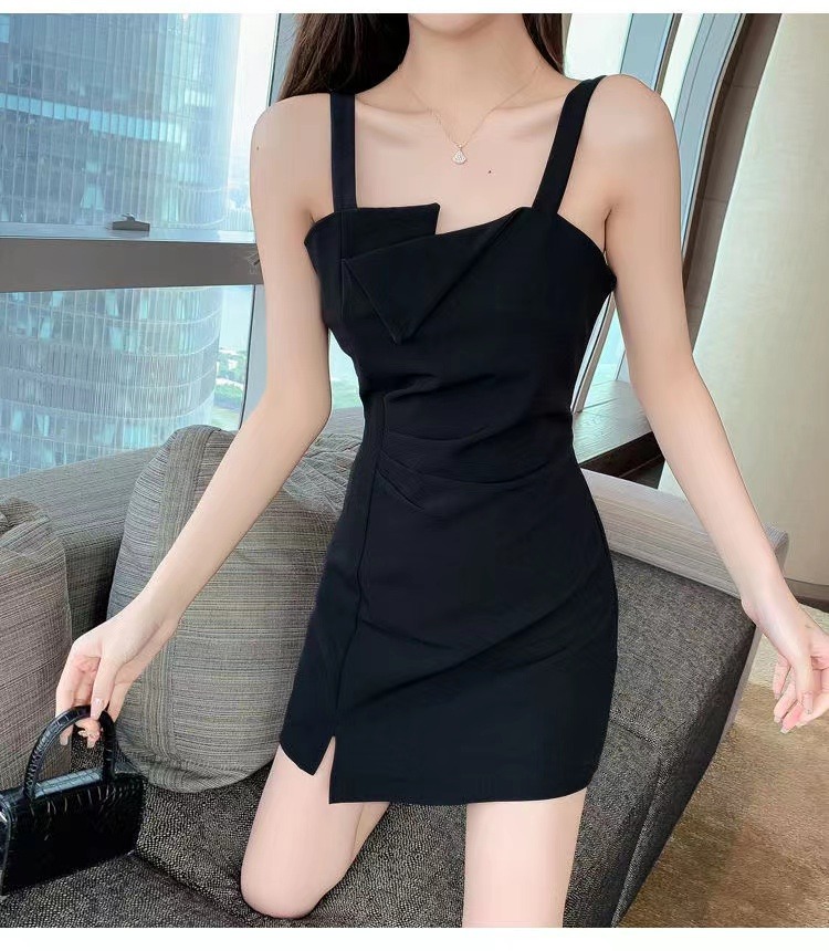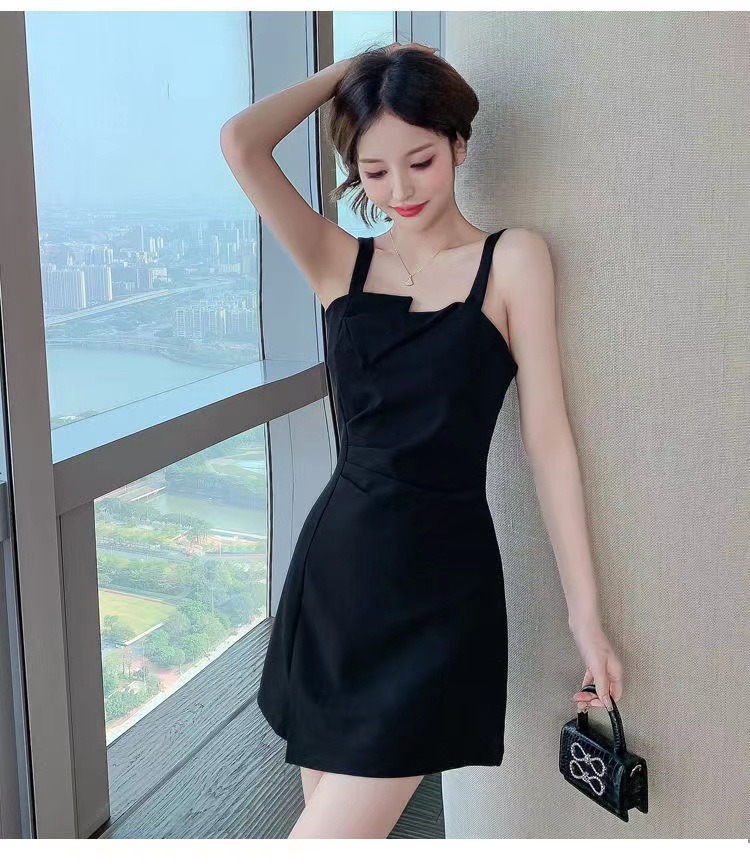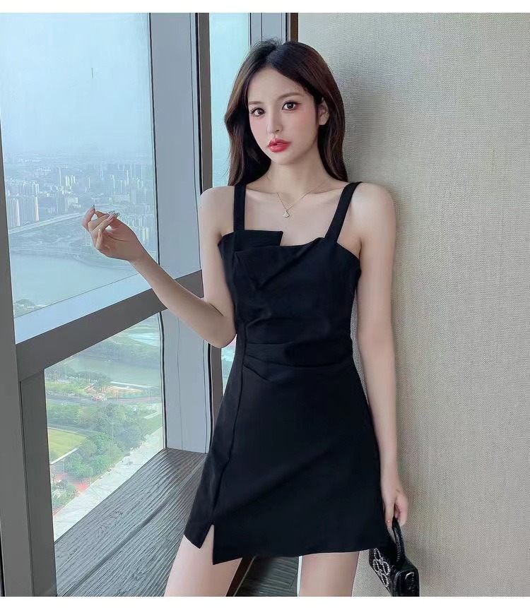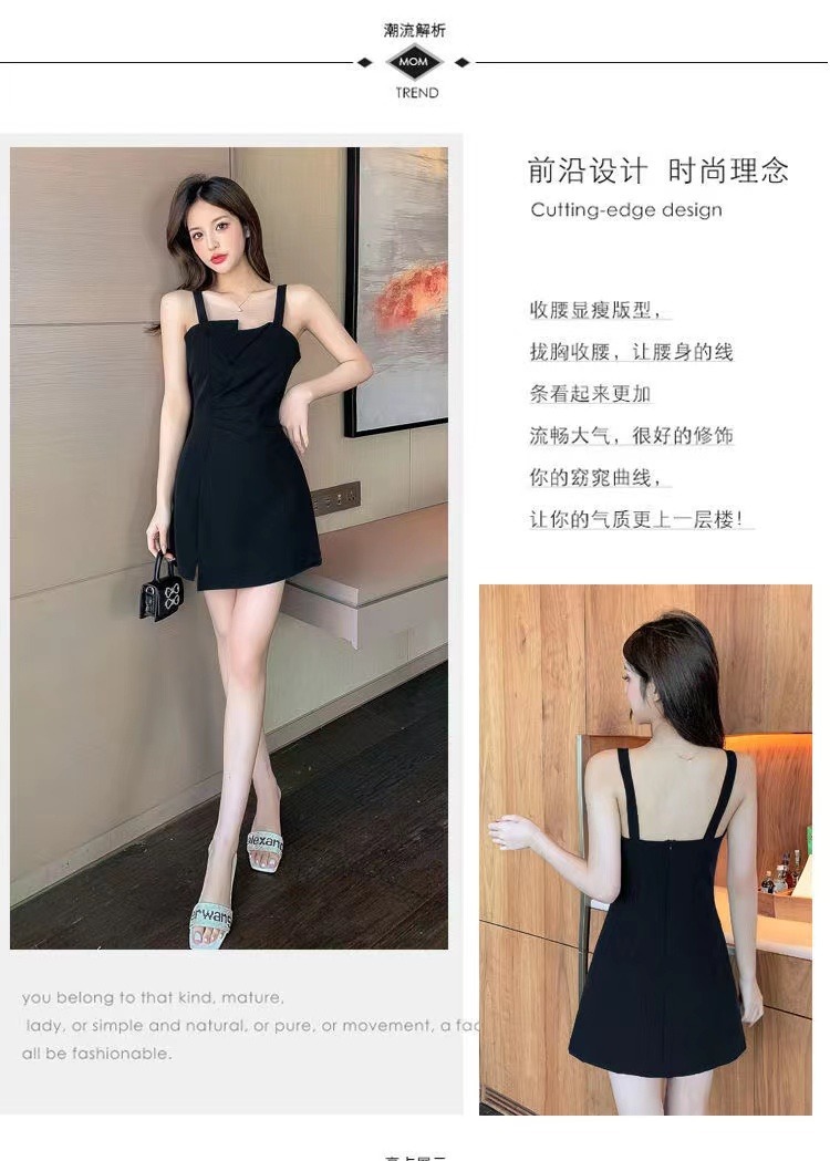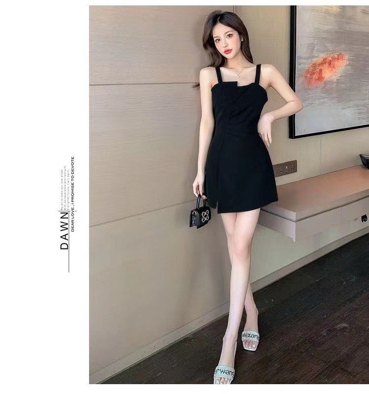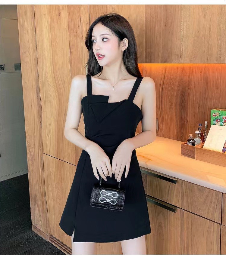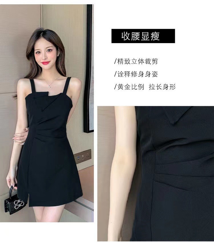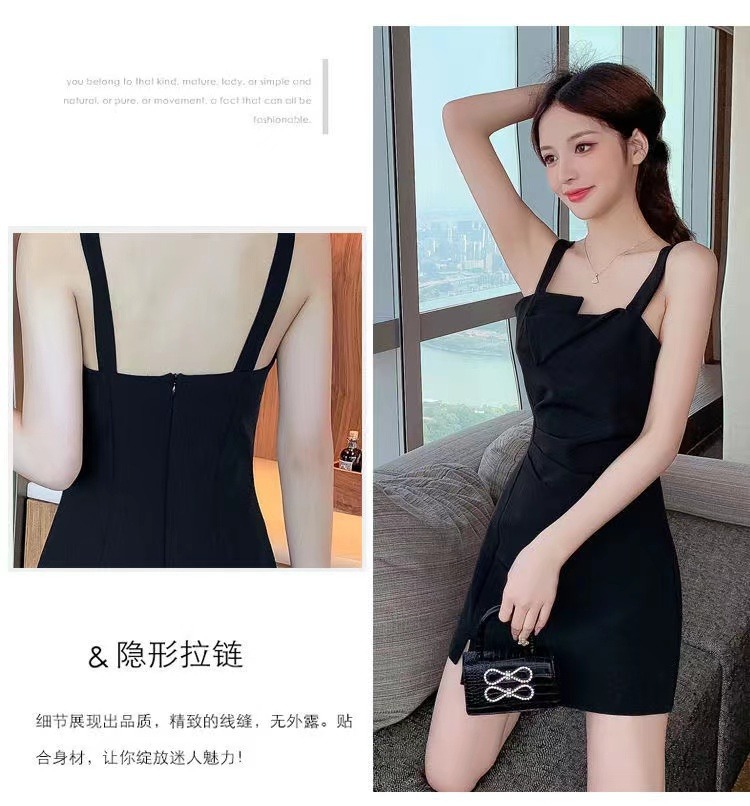 【衣橱BI备,每个女生都该拥有一条小黑裙】新款气质小吊带小黑裙,法式御姐辣妹性感不规则,GAO级感黑色连衣裙子女夏,内搭西装小众设计感可外穿性感收腰赫本连衣裙