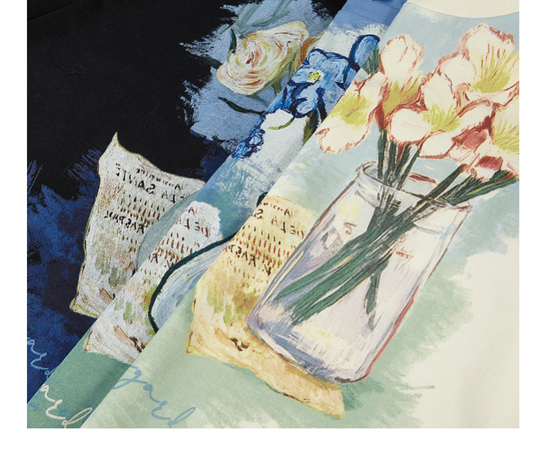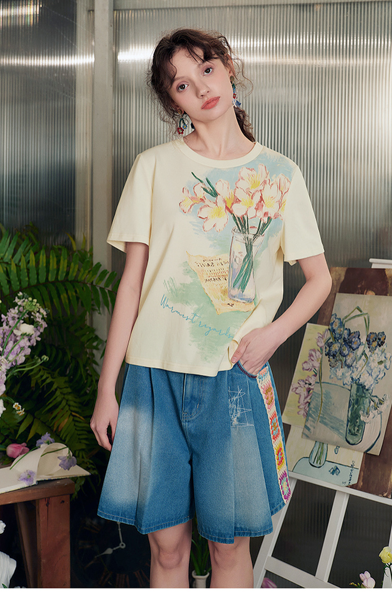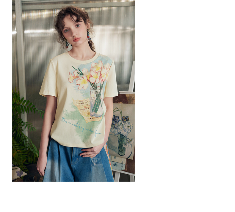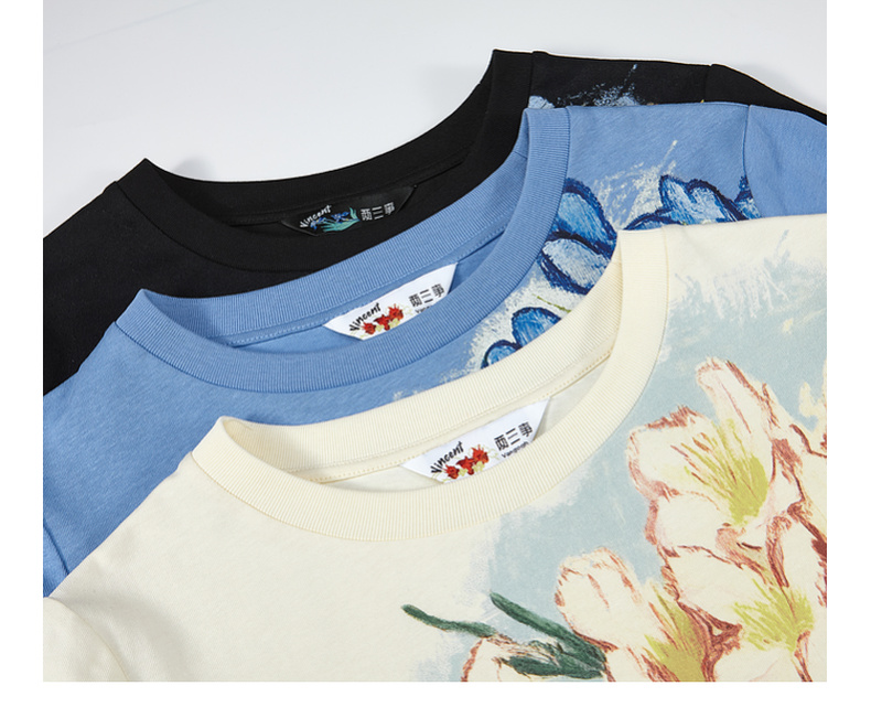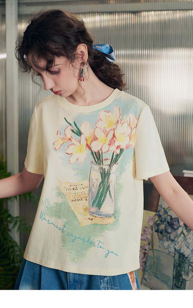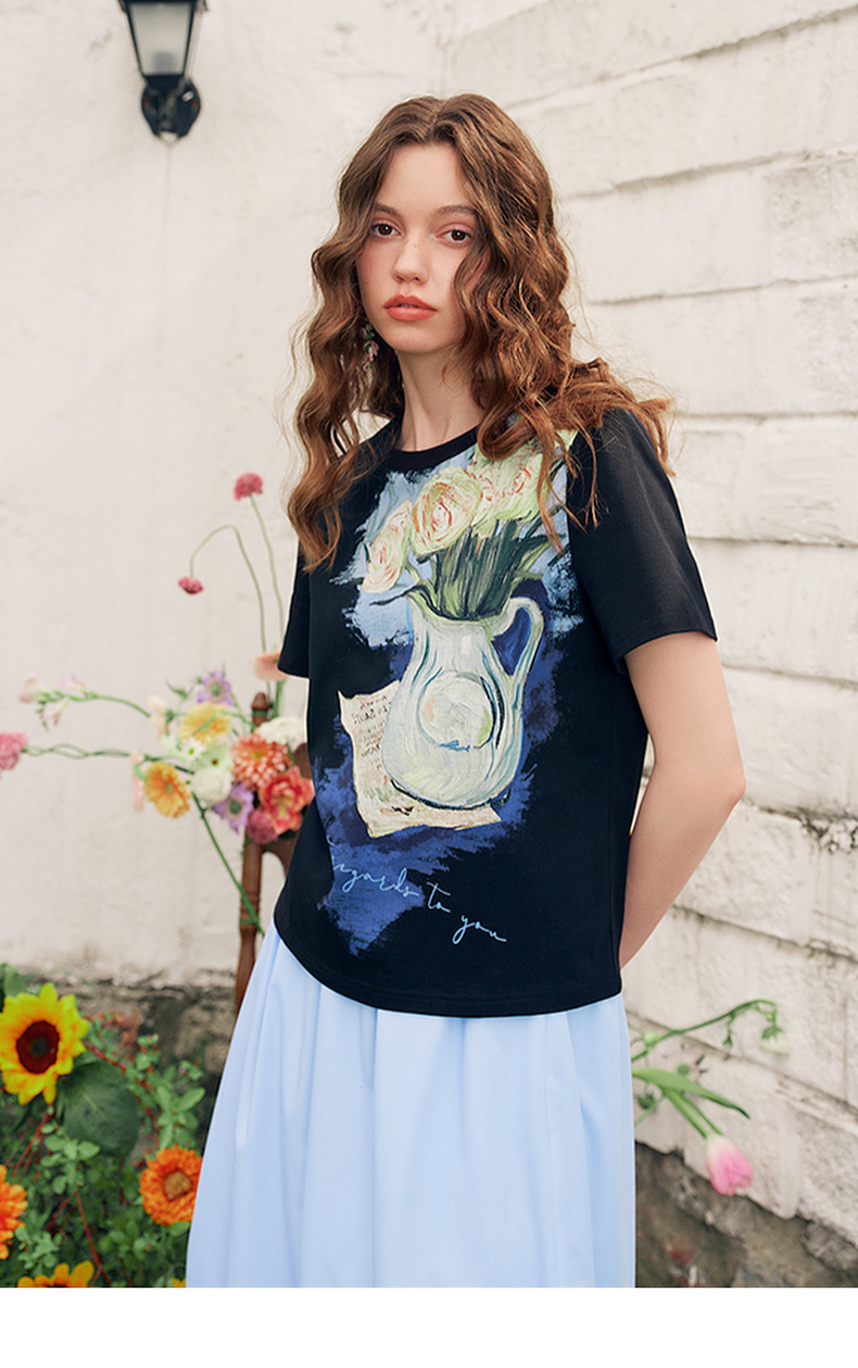 两三事梵高文艺玻璃花房2025夏新款文艺风油画印花短袖t恤女