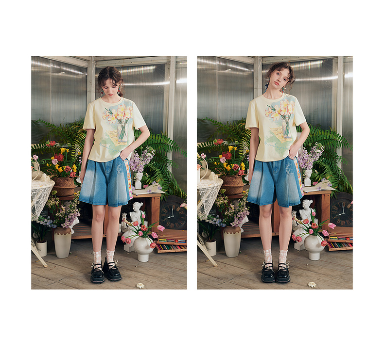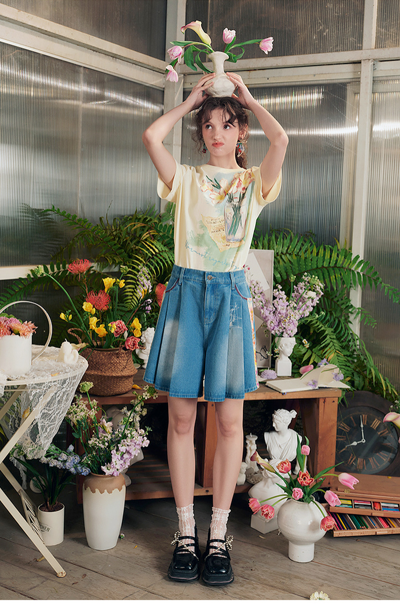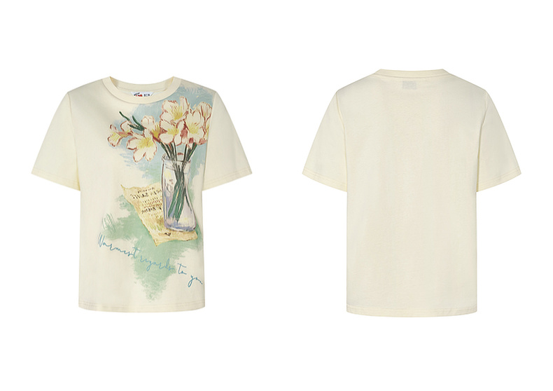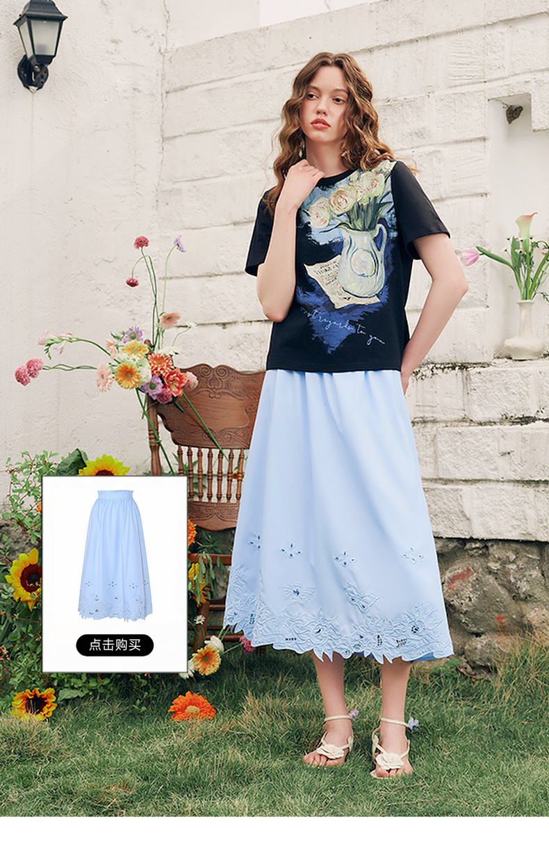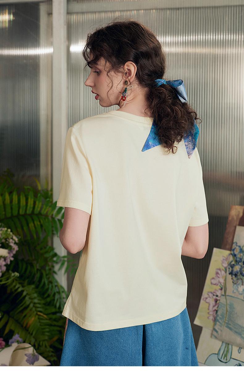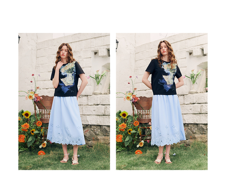 两三事梵高文艺玻璃花房2025夏新款文艺风油画印花短袖t恤女