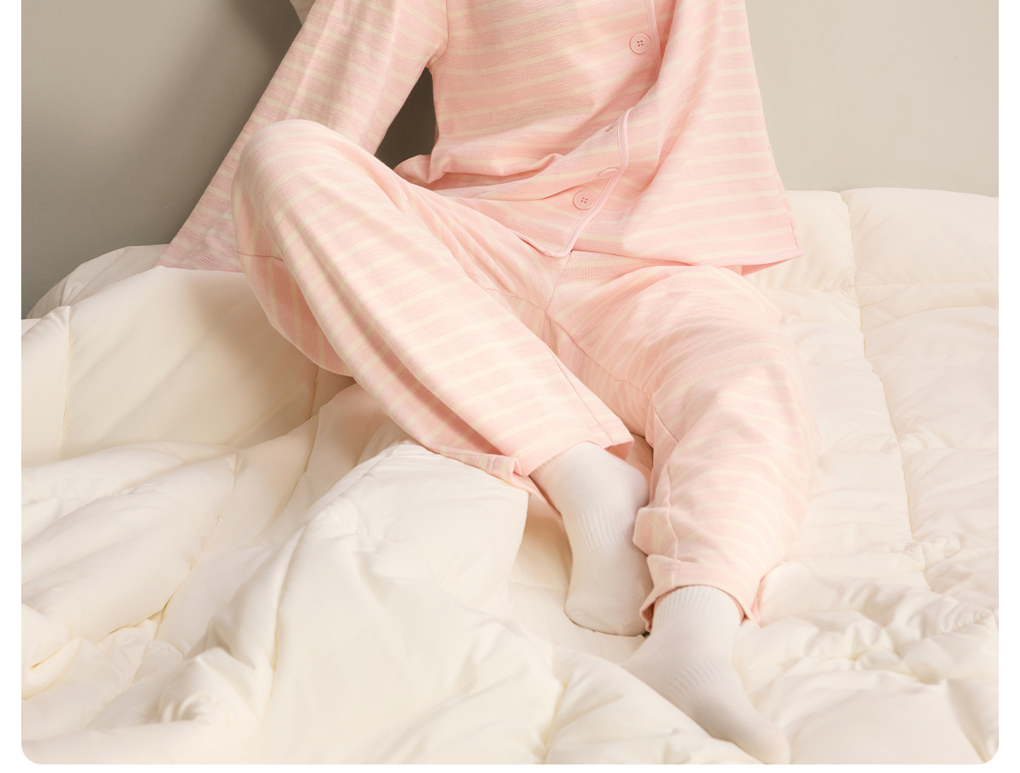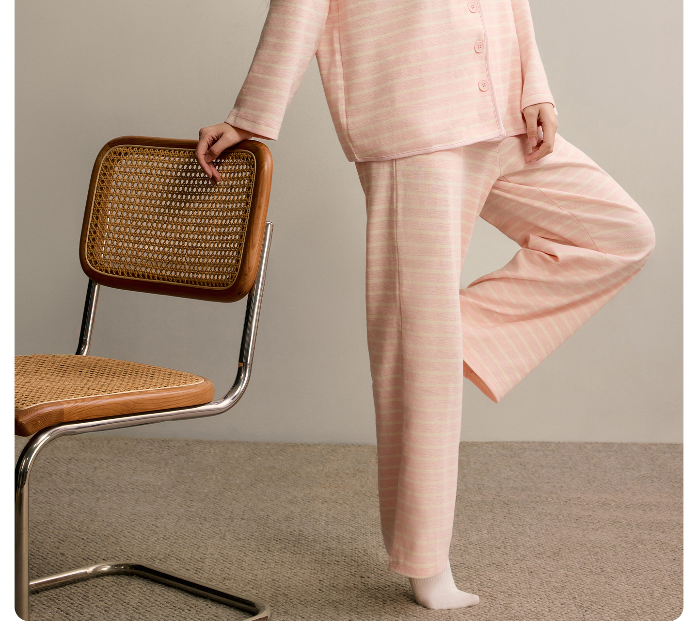 有棵树女士纯棉睡衣条纹家居服套装春秋新款睡衣女款-J1171
