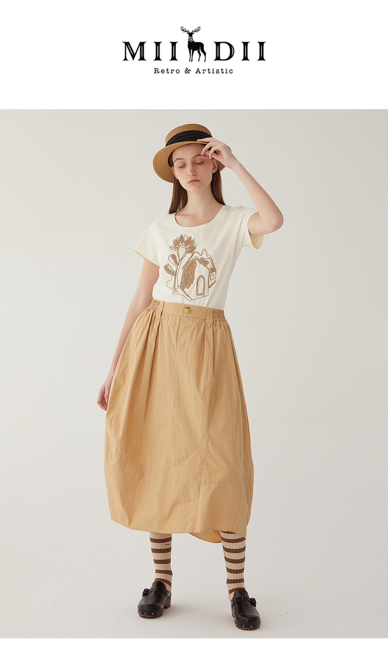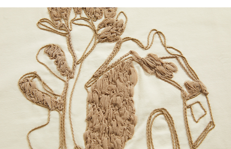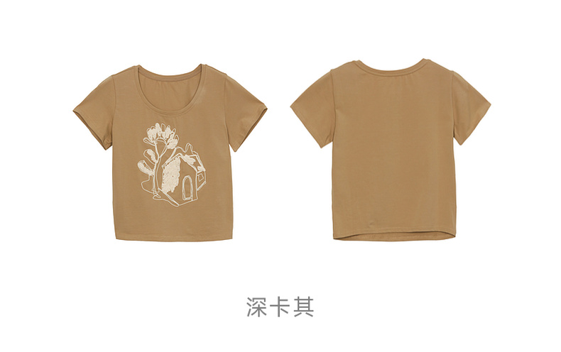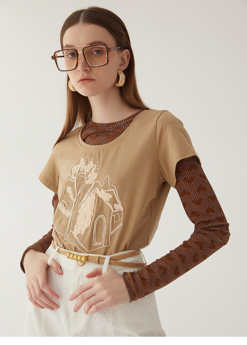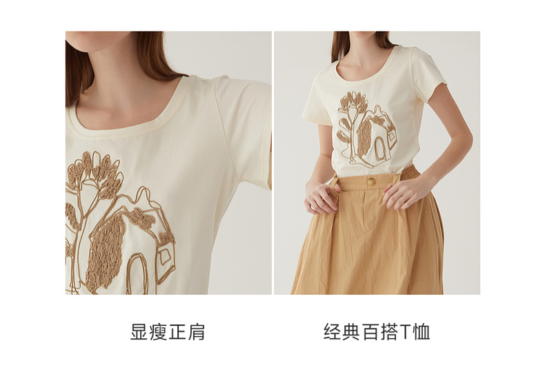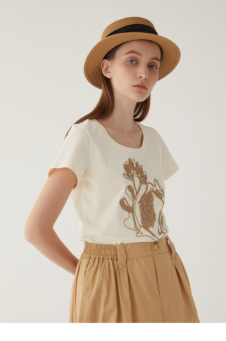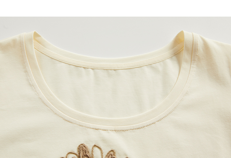 谜底2024夏新款圆领短款修身显瘦T恤女绣花百搭上衣短袖246MT7048