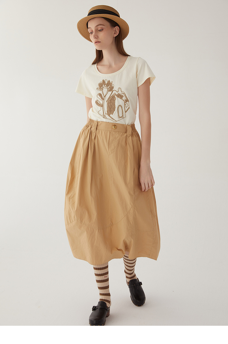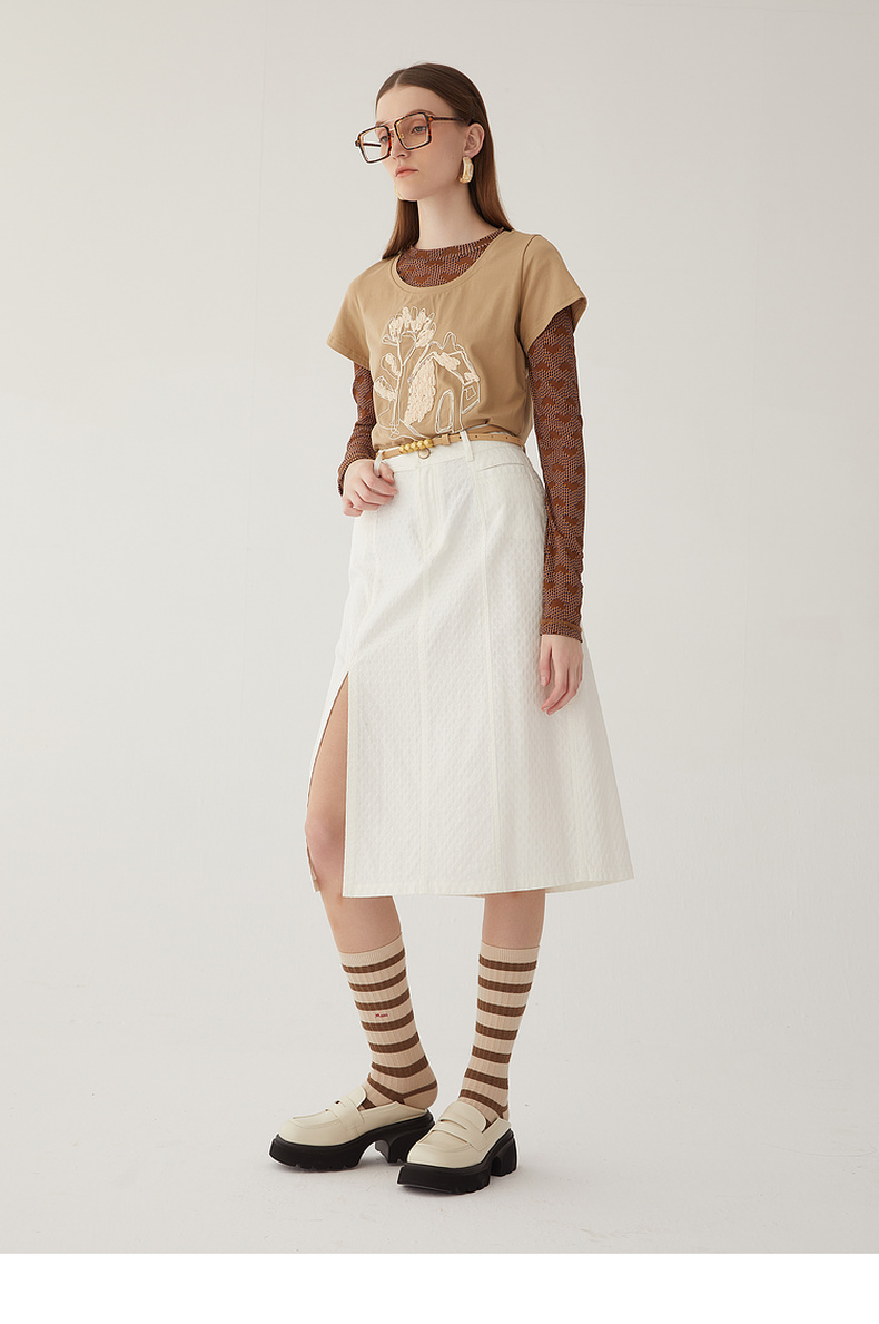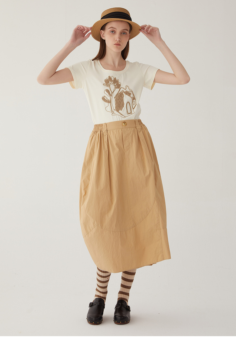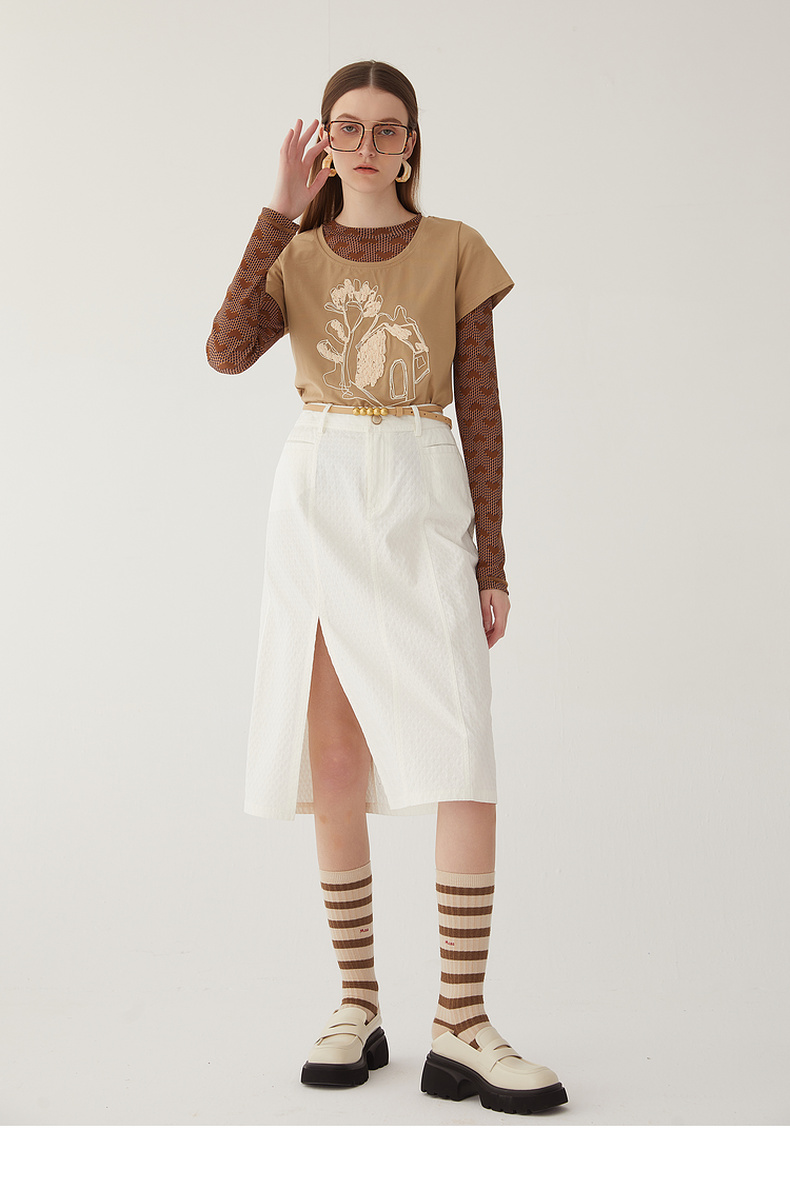 谜底2024夏新款圆领短款修身显瘦T恤女绣花百搭上衣短袖246MT7048
