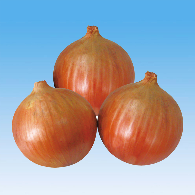 长日照杂交黄皮洋葱品种,中早熟,植株长势旺盛,球形漂亮、近圆形。叶鞘紧实,收口好,硬度高,单球重420g左右。收获后呈铜黄色,色泽光亮,商品性优,耐储藏。