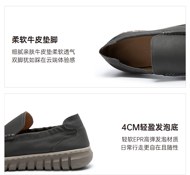 千百度男鞋真皮厚底时尚休闲鞋增高一脚蹬轻便运动鞋A25161659