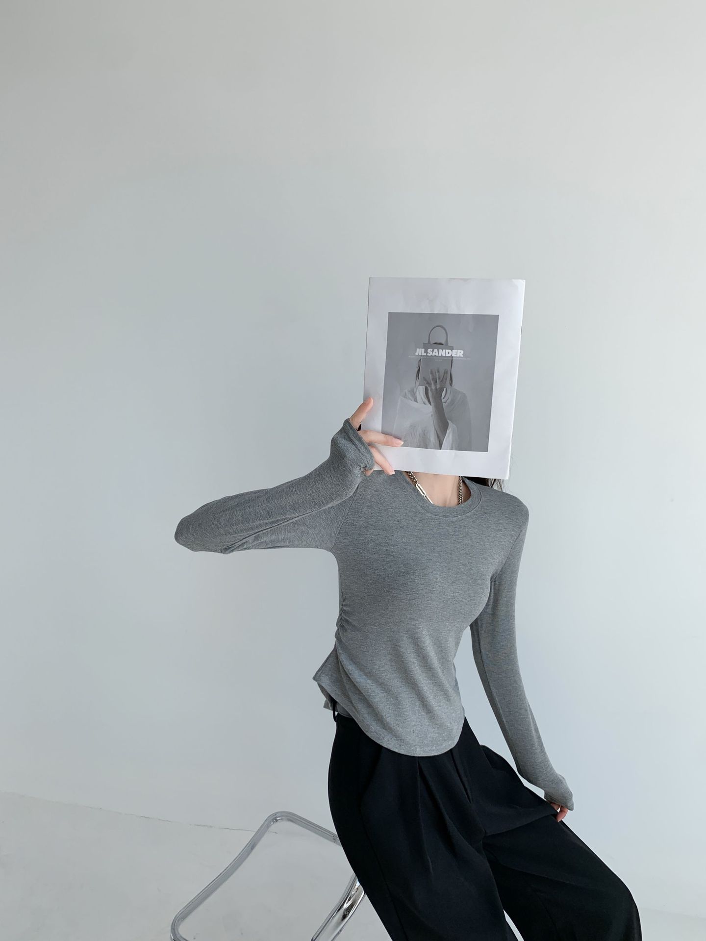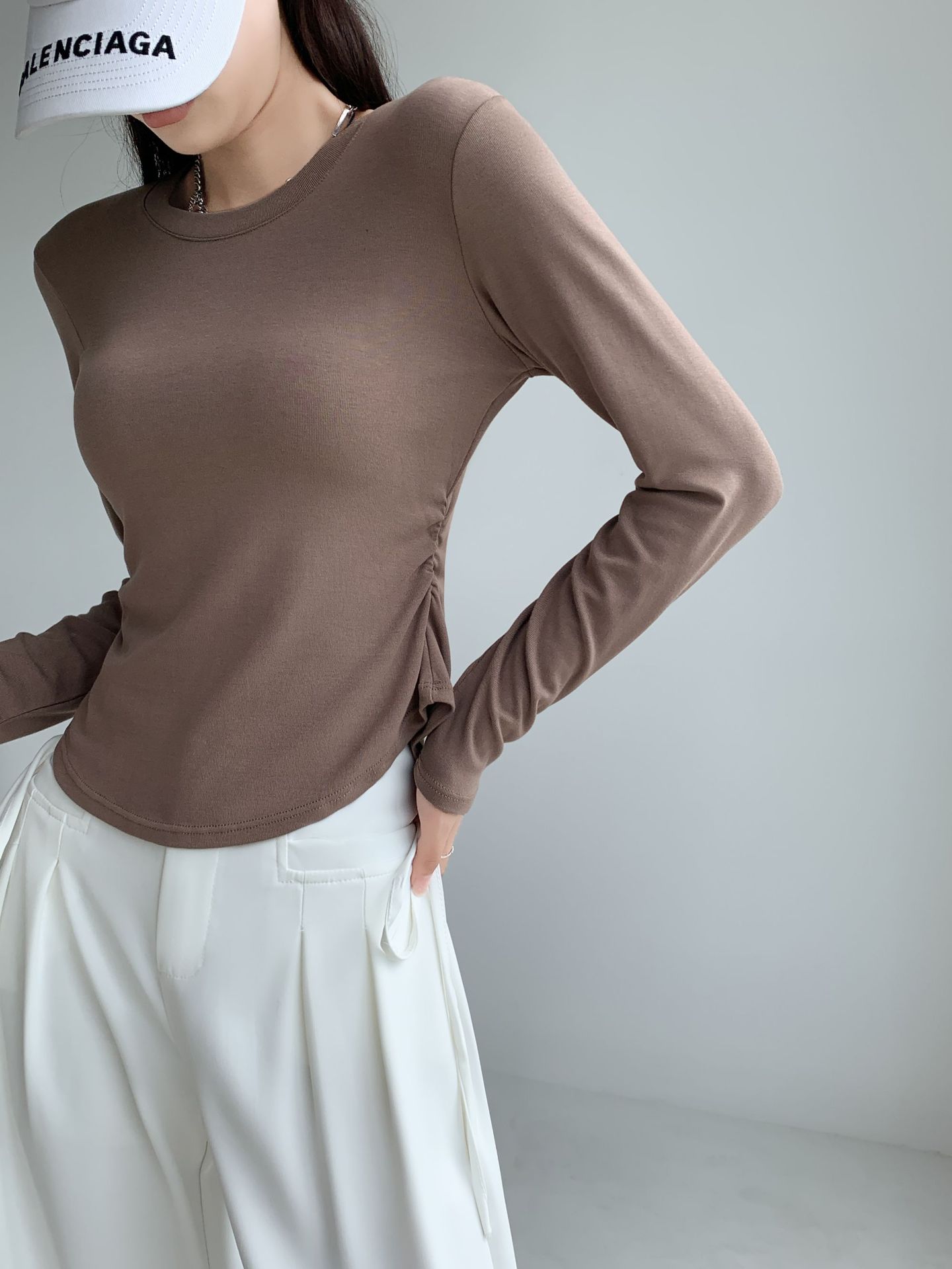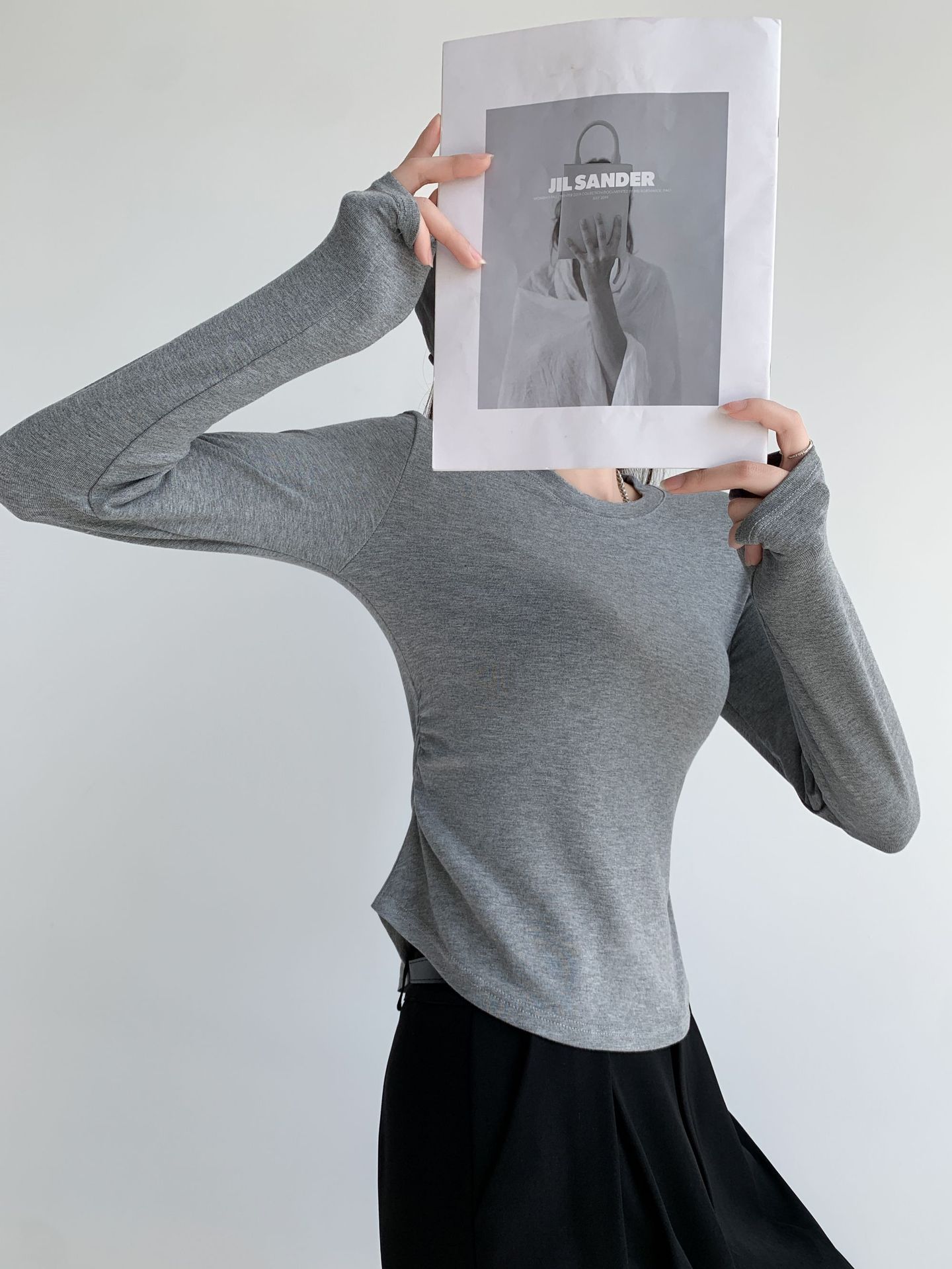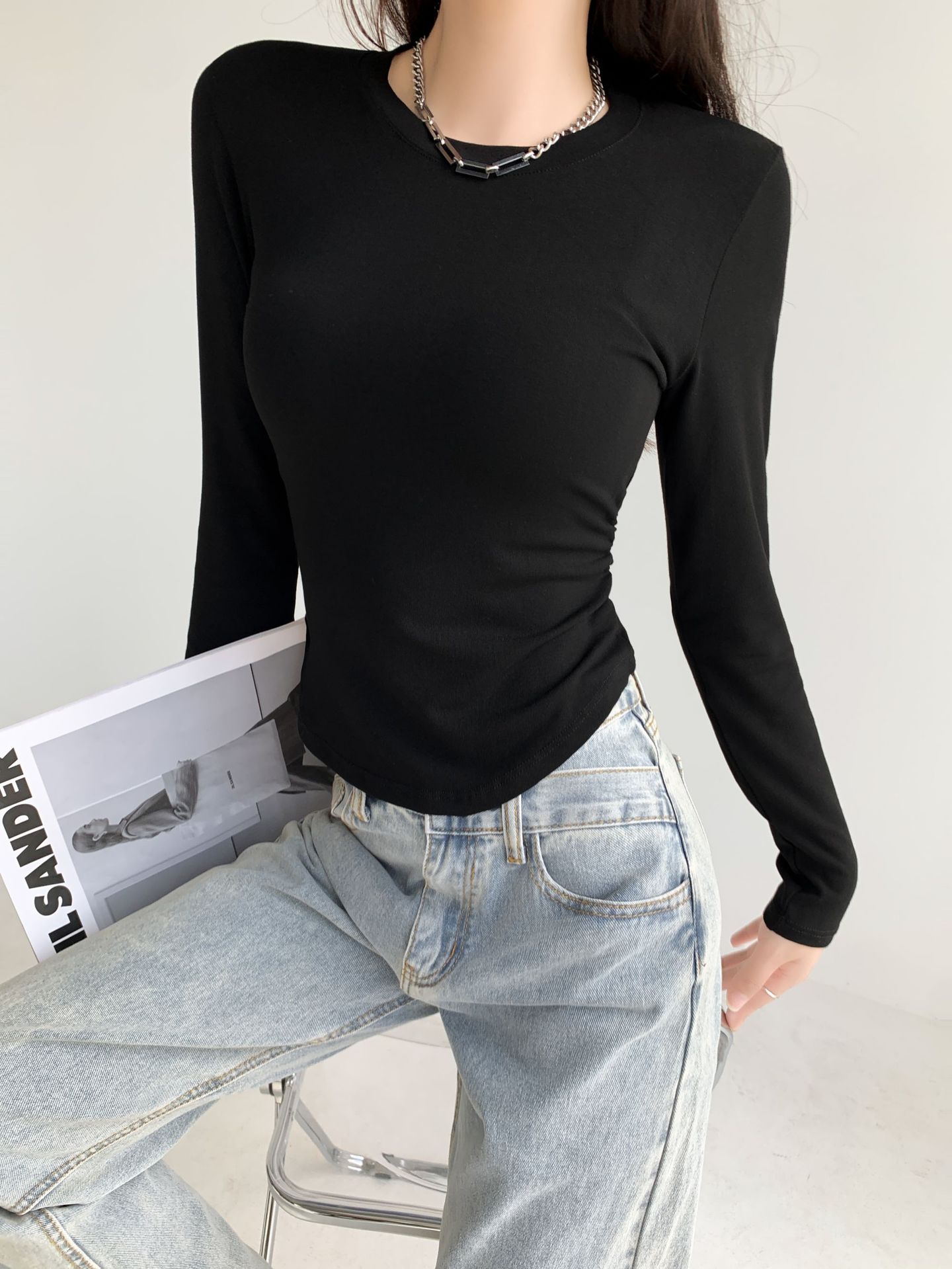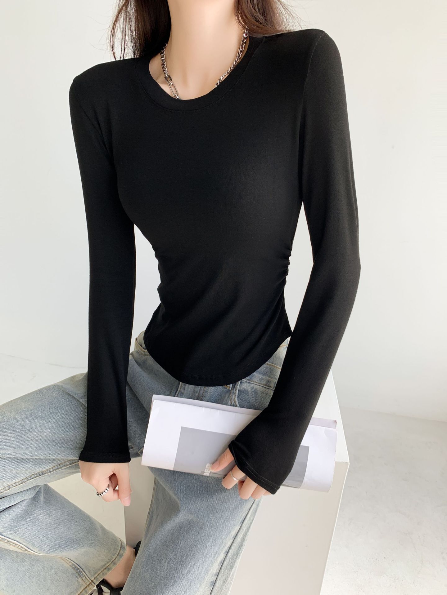 显瘦修身 气质百搭 纯白色秋季新款 小v领打底衫女 内搭洋气 纯欲正肩长袖t恤
