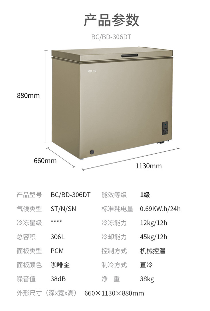 美菱(MELING)BC/BD-306DT 306升单温冷藏冷冻转换冰柜 大冷冻能力