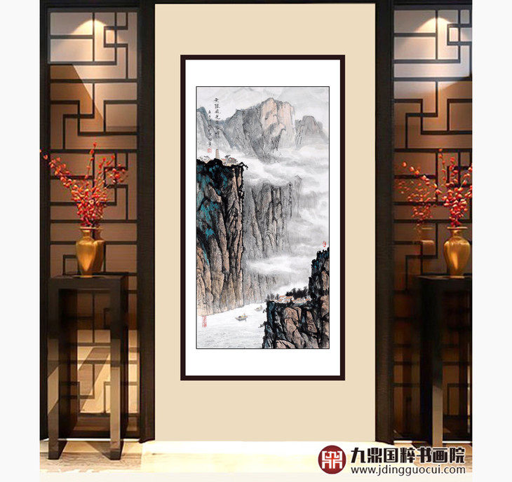 王功学《无限风光在险峰》68*138cm 山水竖幅作品 玄关/办公室挂画