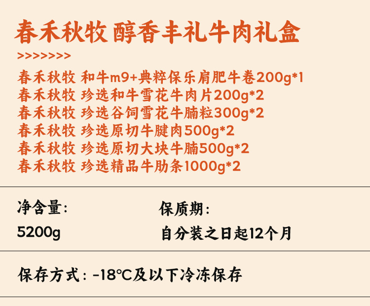 春禾秋牧醇香丰礼牛肉礼盒5200g(1688型中式)