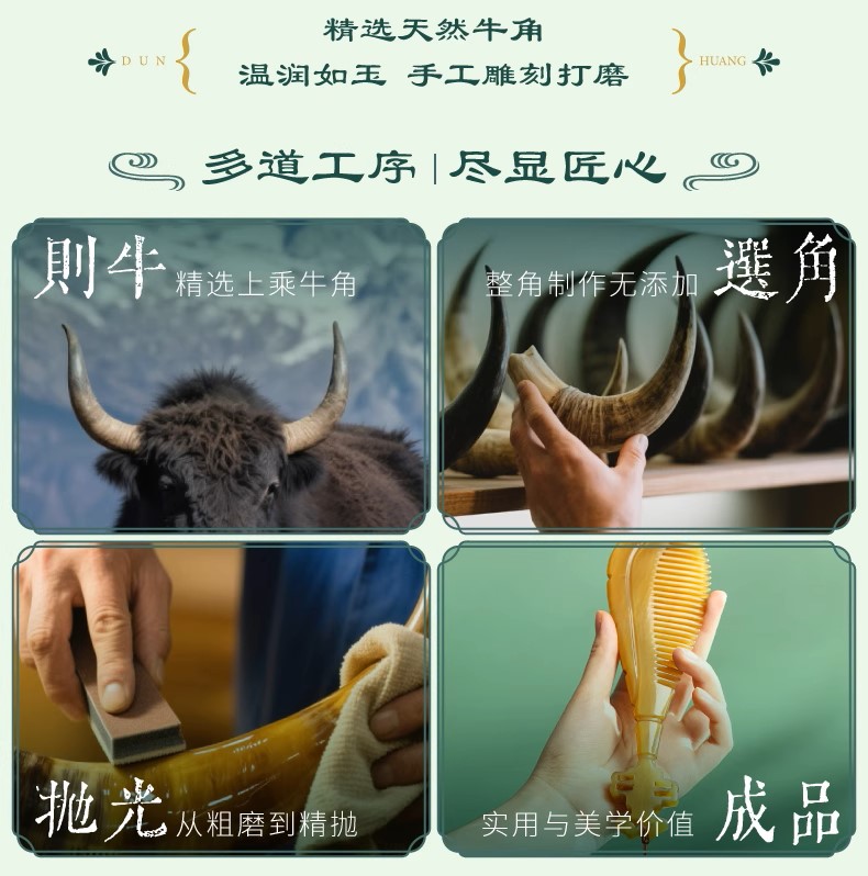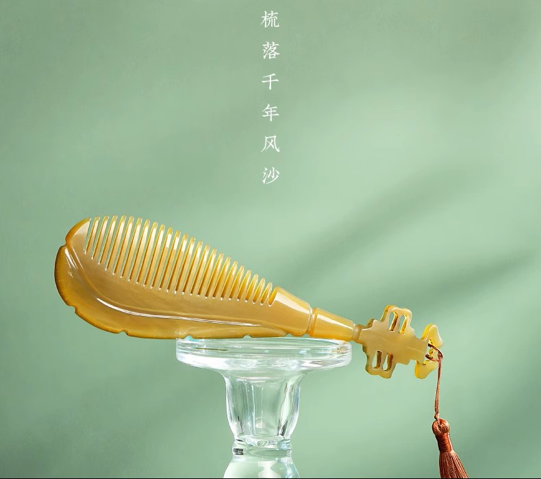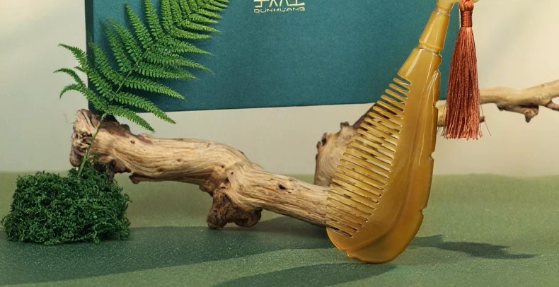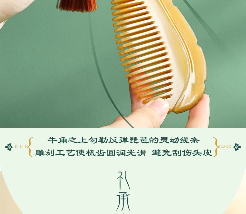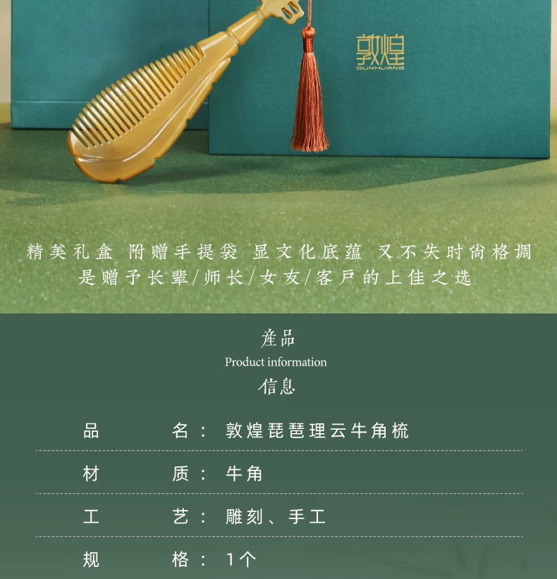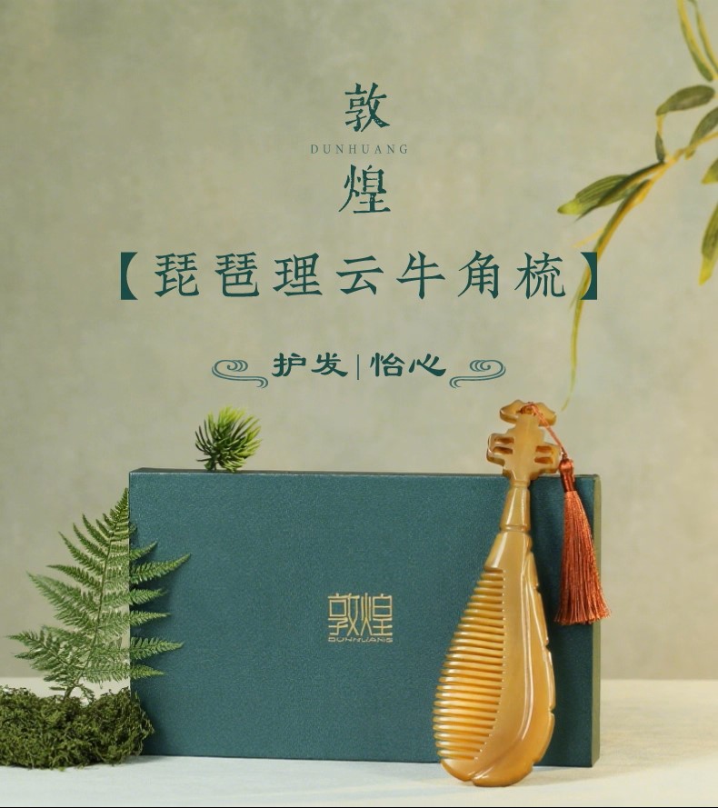 敦煌研究院琵琶理云牛角梳手工梳子护发梳创意礼品送长辈老师礼盒
