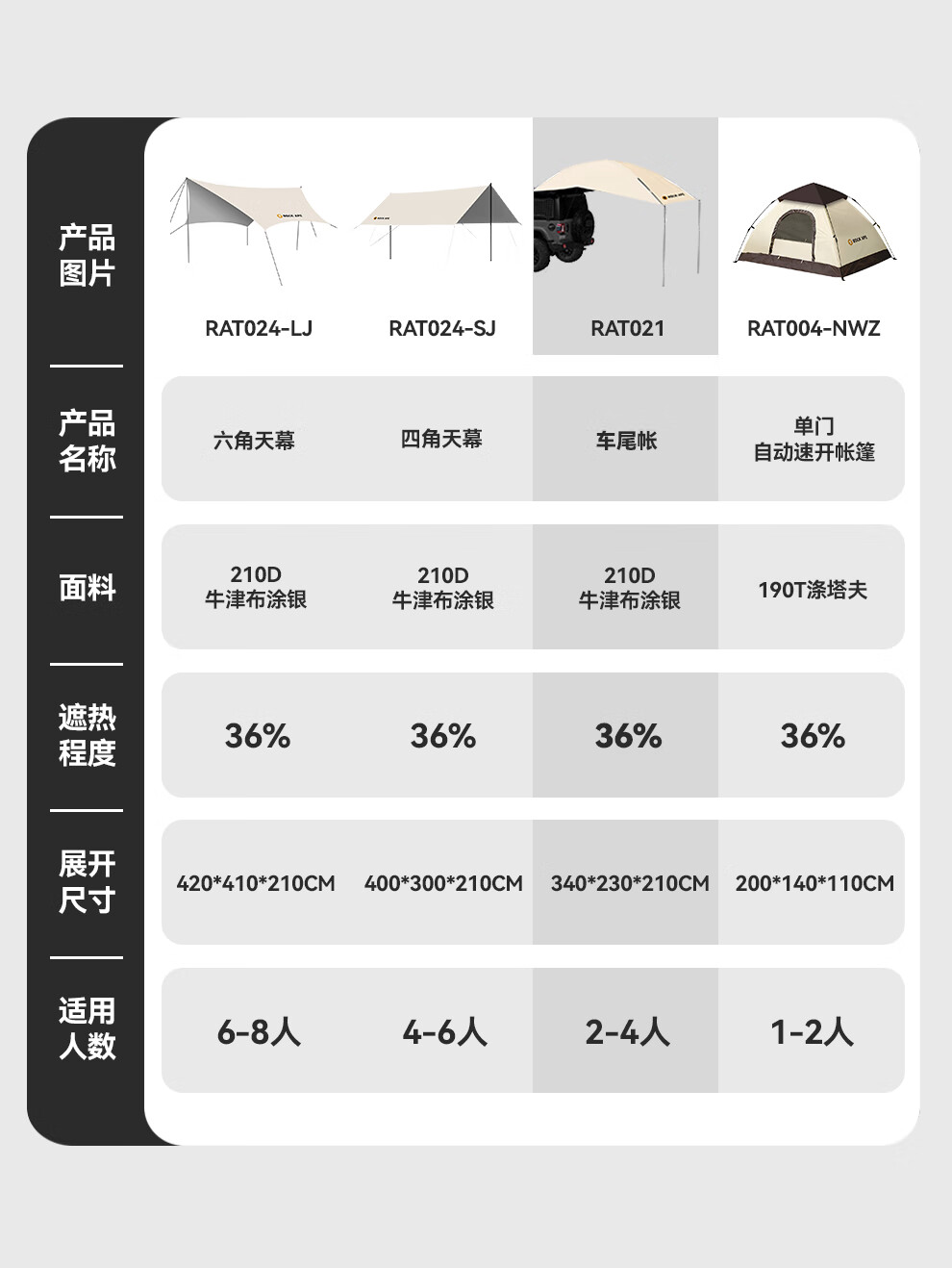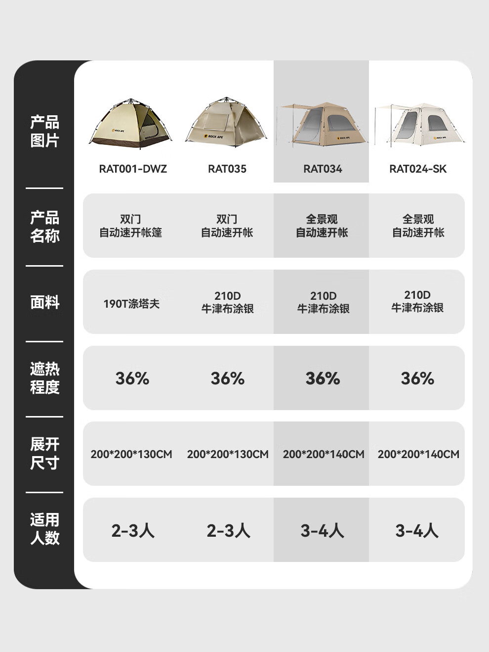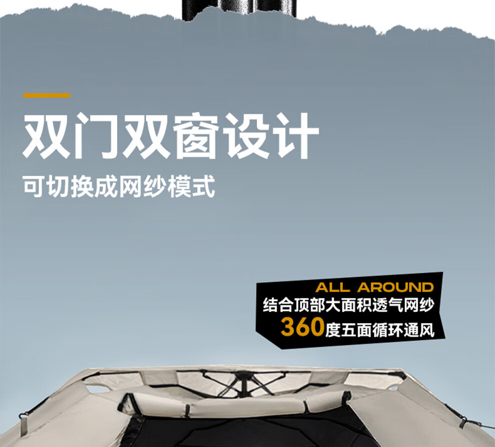 【户外帐篷集合】洛克猩球单双门全景观自动手动速开野外露营野营多人四角六角帐篷天幕套餐 全景观自动速开帐