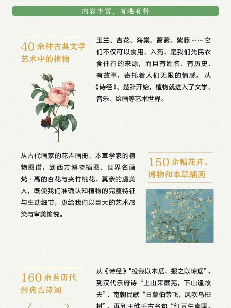 160余首历代经典古诗词、480余则历史文献,带领我们由植物通往文学、历史、艺术的世界。