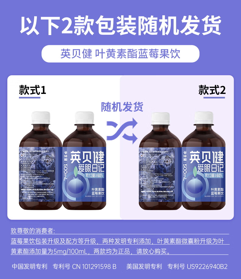 英贝健 叶黄素酯蓝莓果饮500ml*3