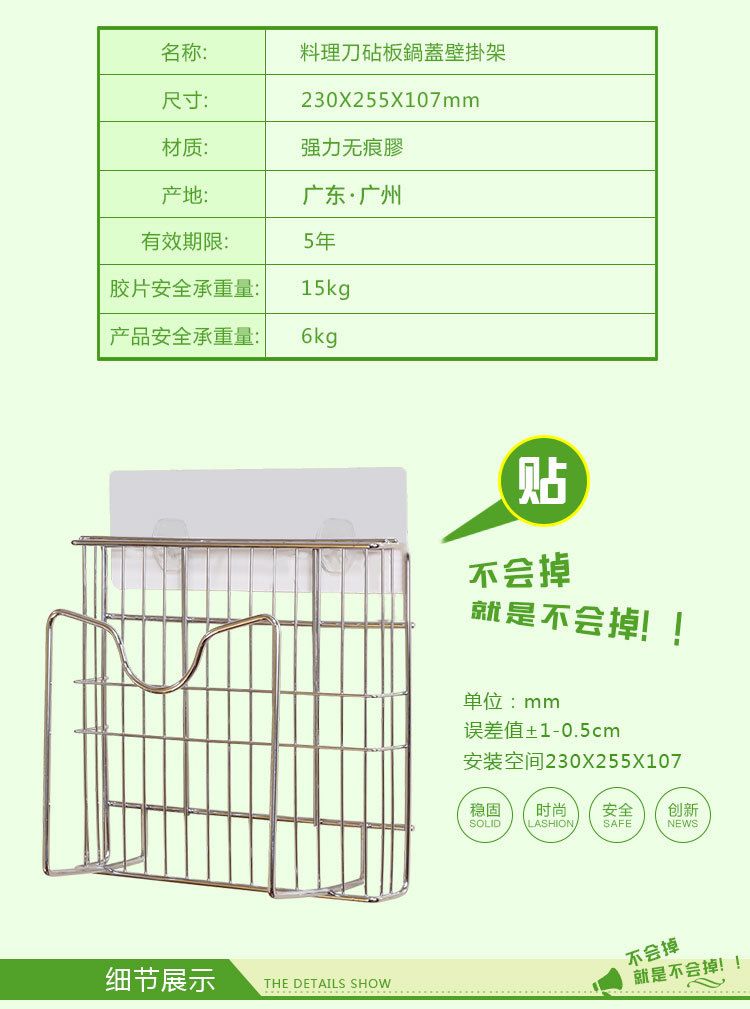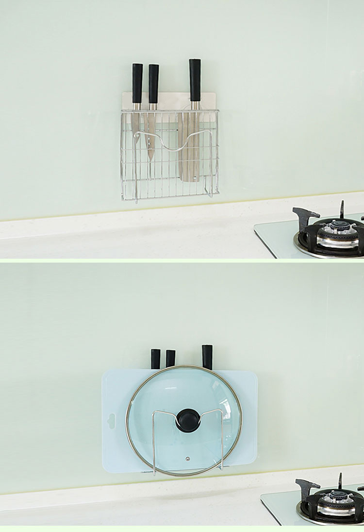易牢永逸厨房壁挂式刀架免打孔砧板锅盖菜刀收纳多功能家用墙上多层置物架【不支持补差,非质量问题不退不换】S