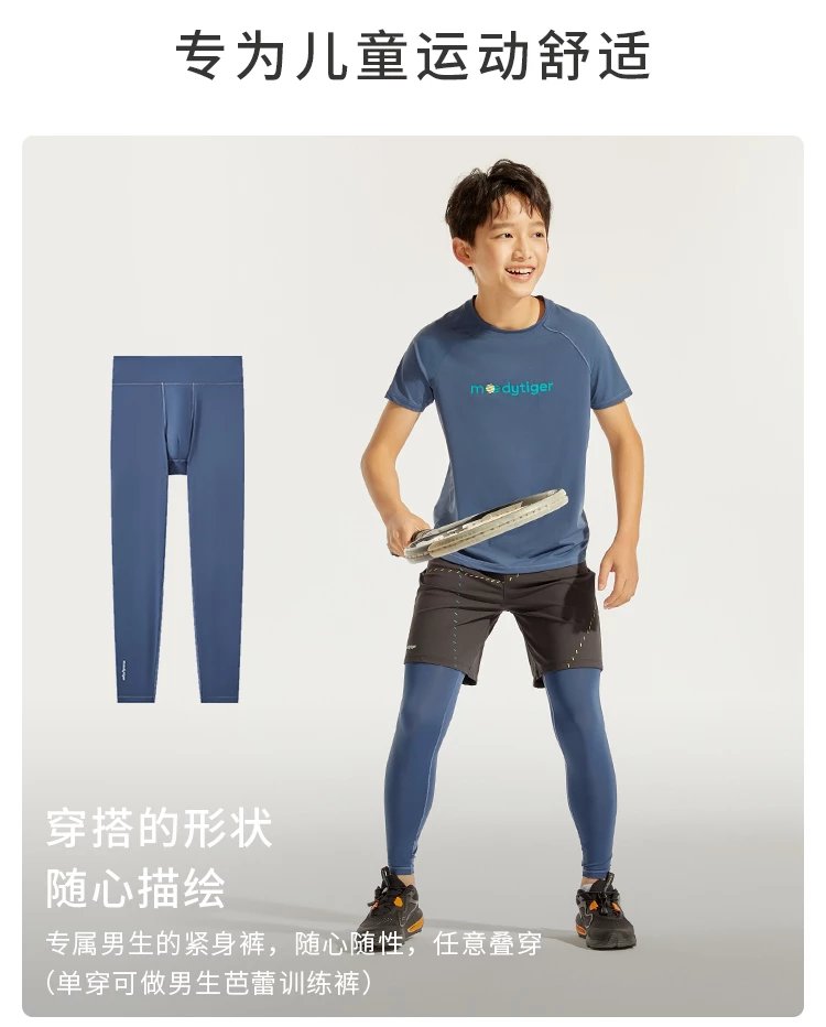 【24年夏新品】moodytiger男童防晒紧身裤24夏新款弹力轻薄速干运动裤|小轻风42111401