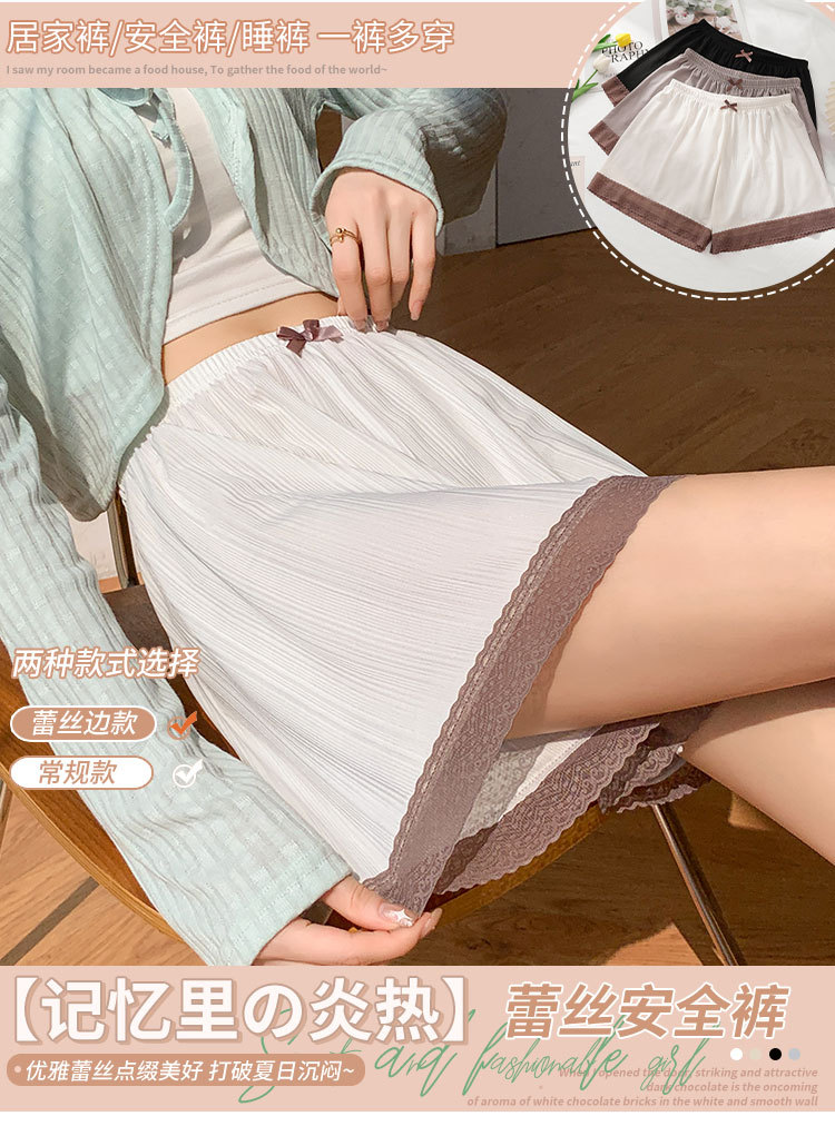 买一送一拍下发2件任选颜色冰丝安全裤女夏薄2025新款蕾丝防走光可外穿不卷边短裤宽松打底裤