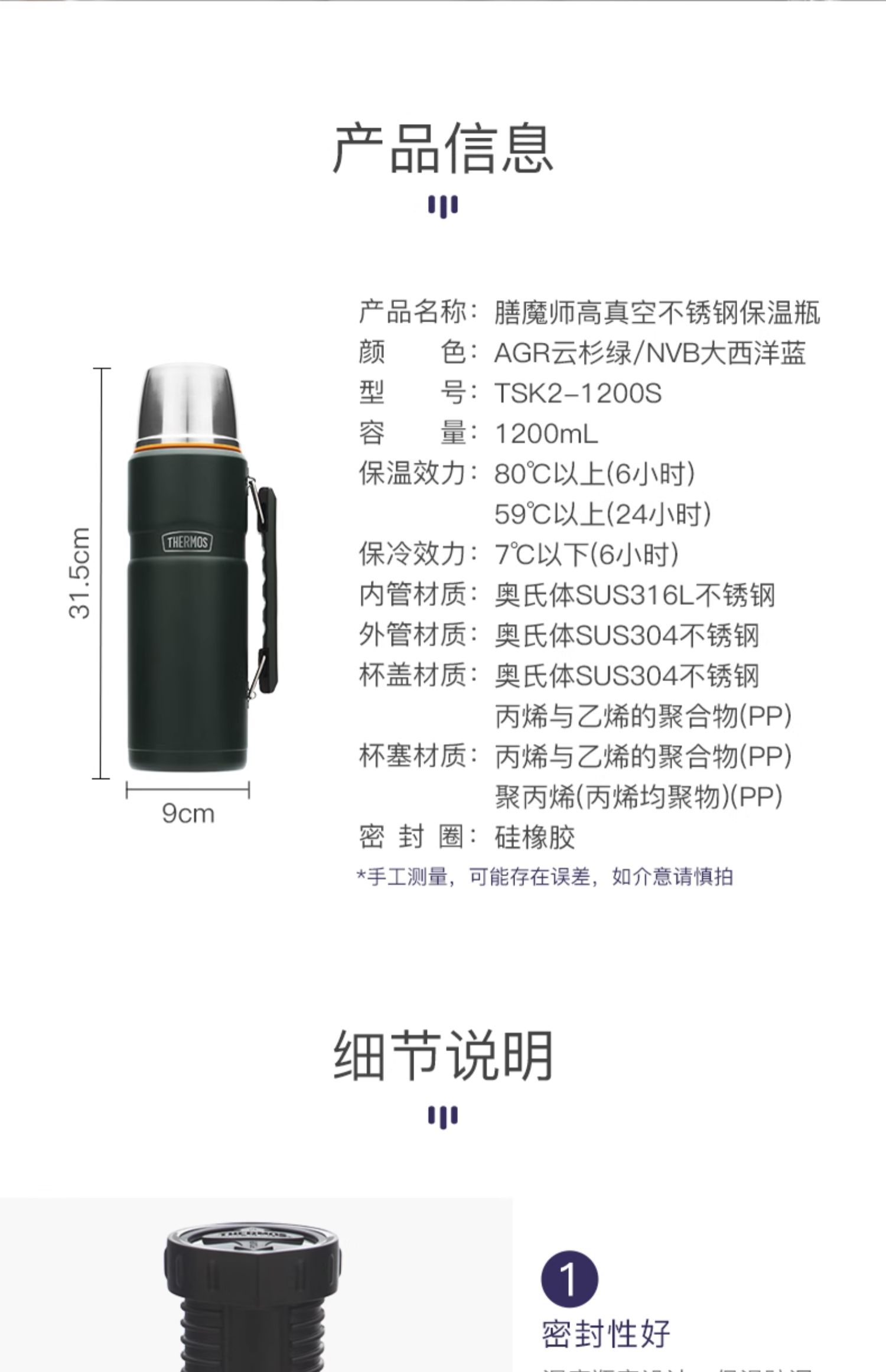 膳魔师不锈钢保温杯壶办公复古随行杯TSK2户外露营系列保温咖啡杯