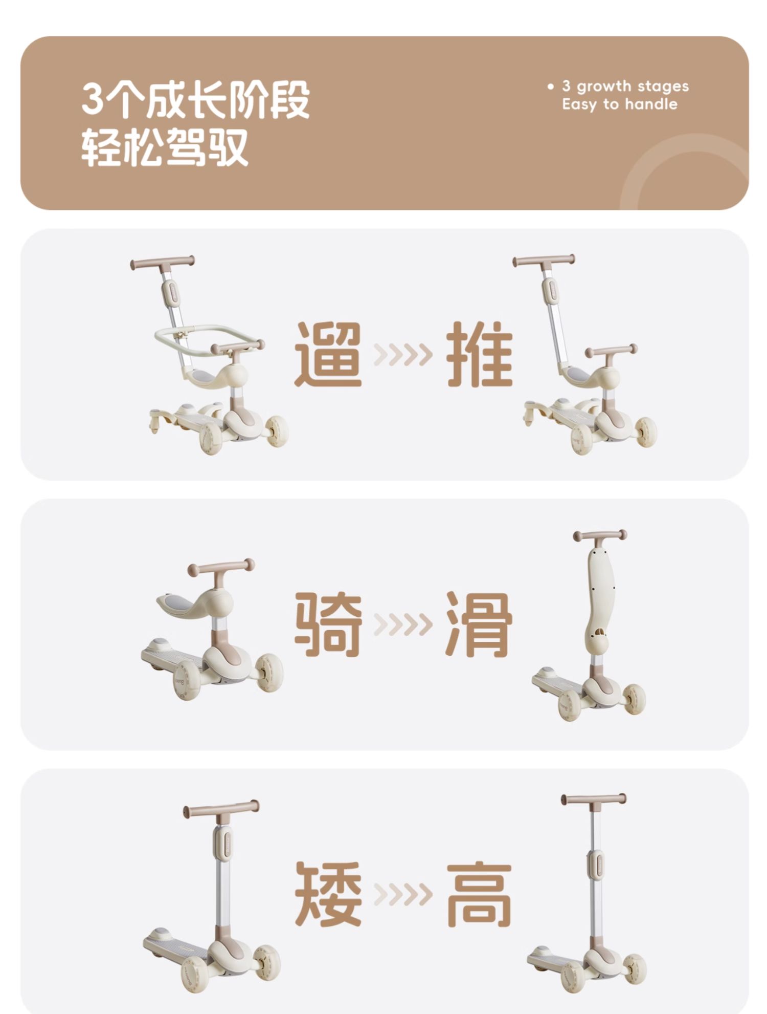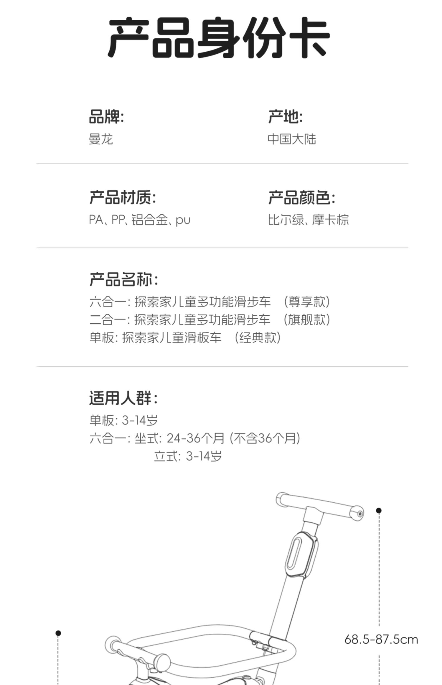 【冬日暖拥】曼龙mloong探索家儿童滑板车1一3一6岁 六合一滑行车