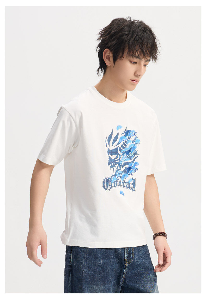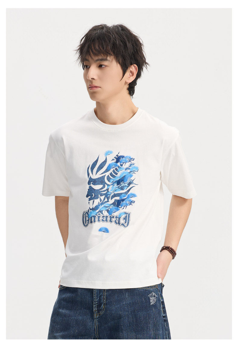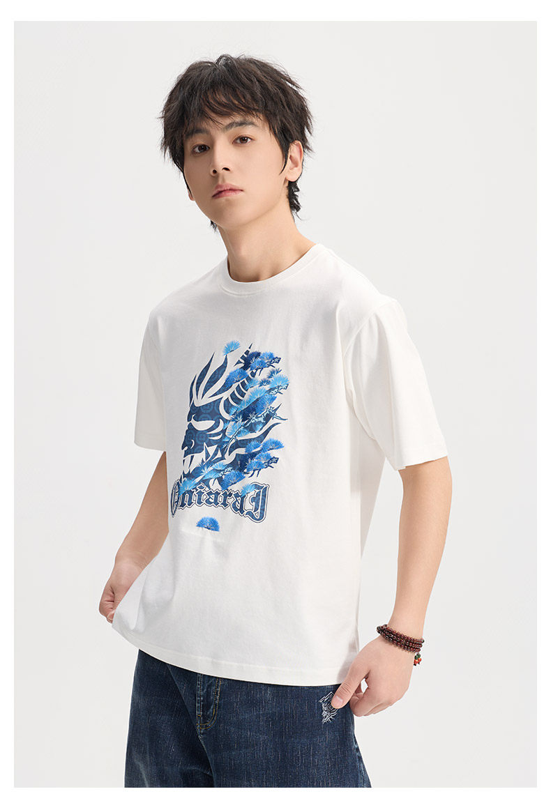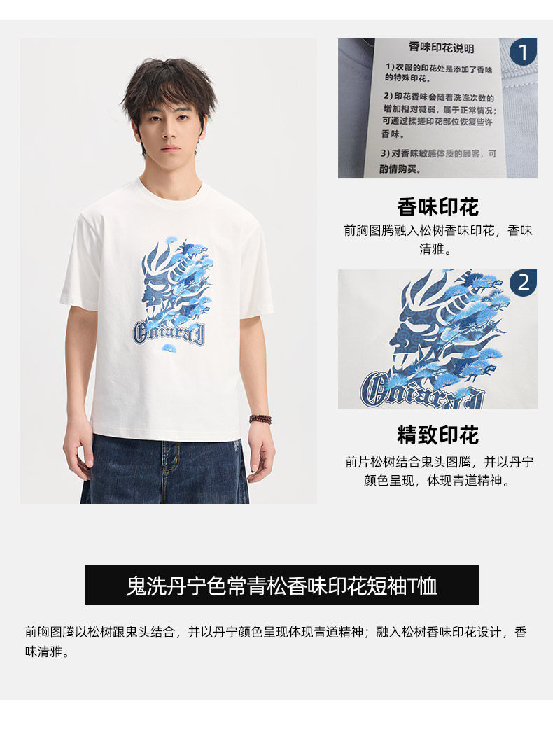 ONIARAI/鬼洗26春夏新品鬼洗丹宁色常青松香味印花短袖T恤B840300