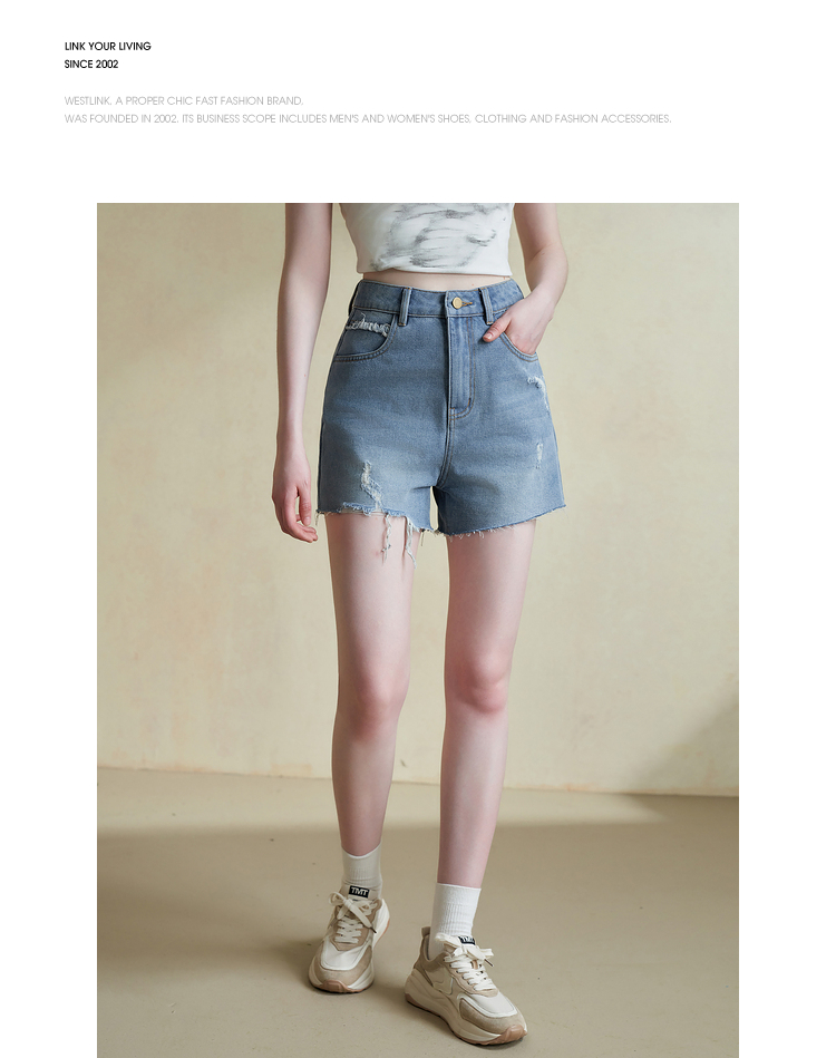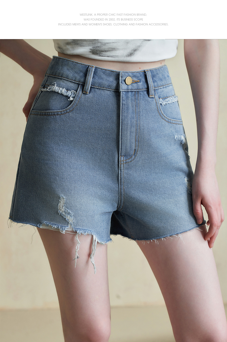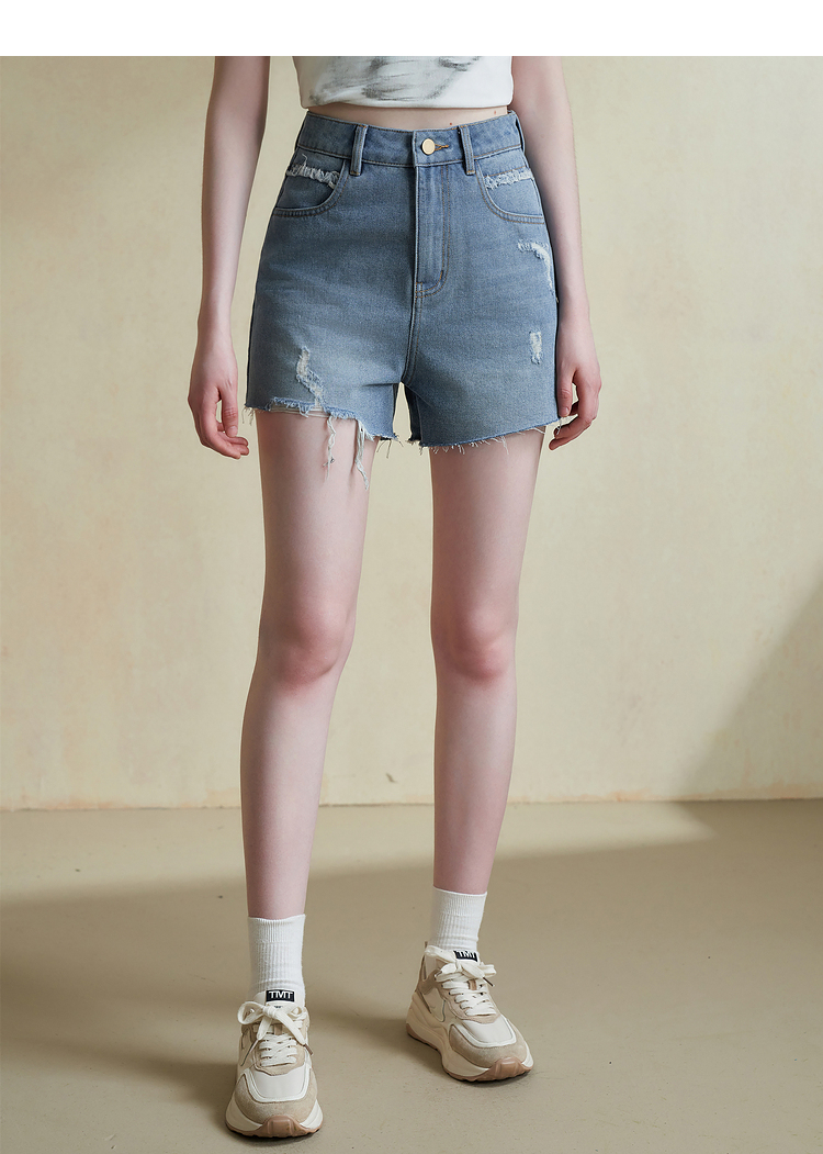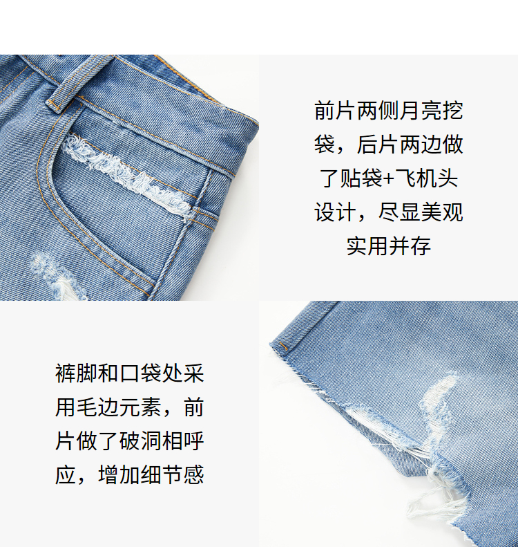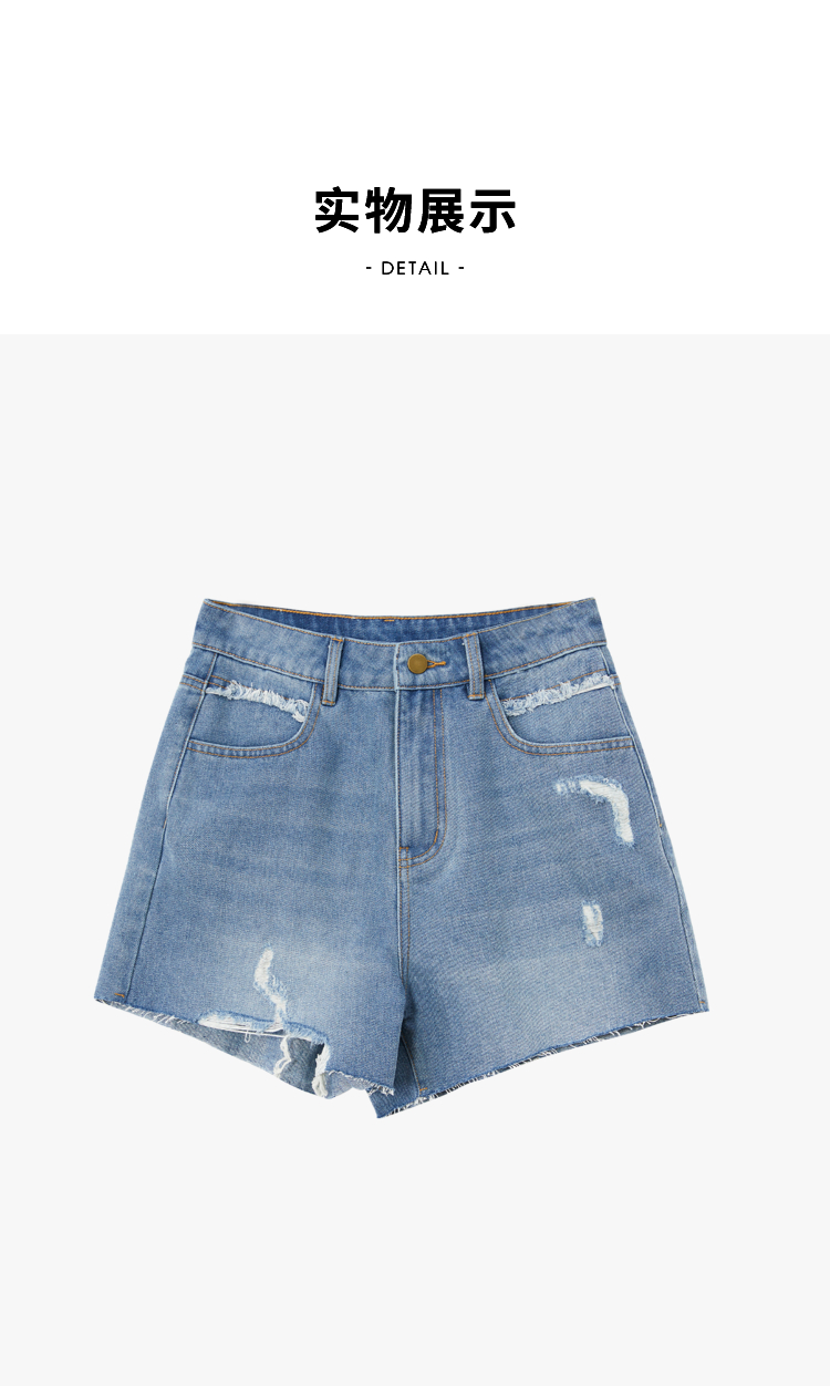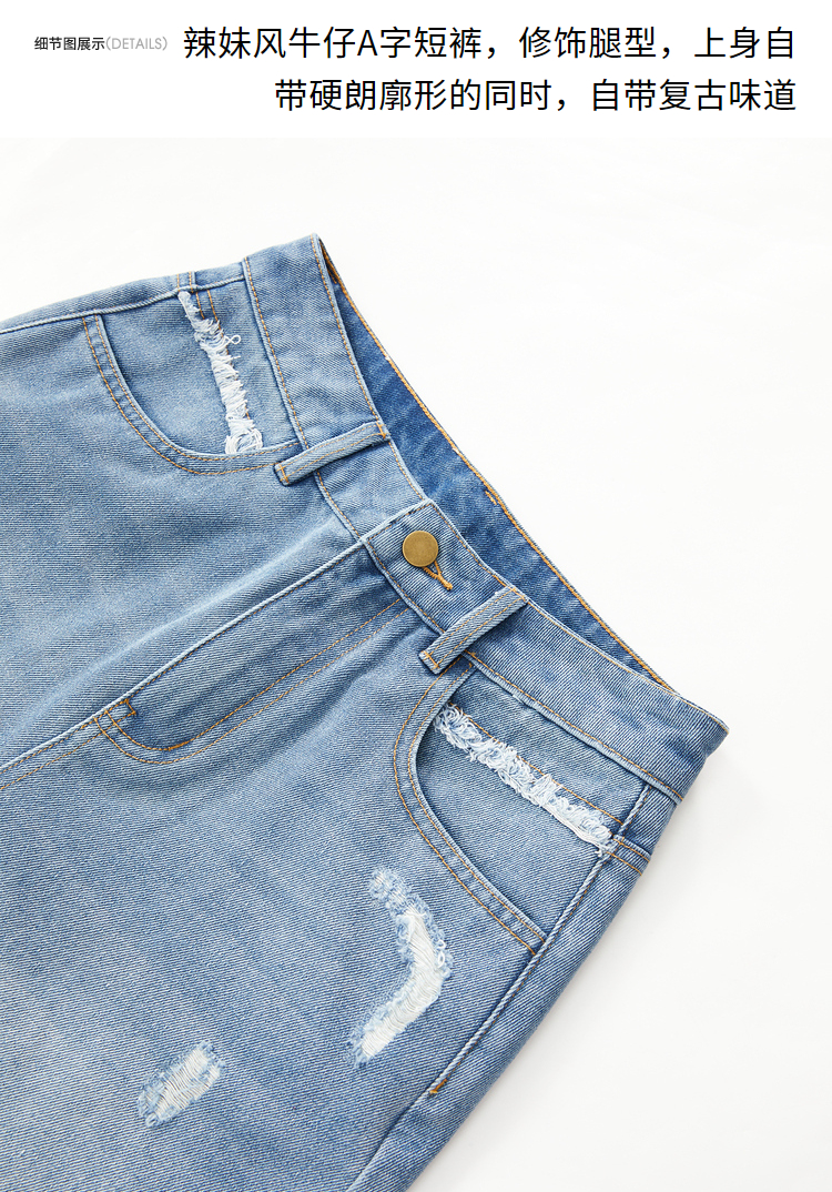 复古甜酷辣妹风牛仔裤女夏季廓形破洞毛边A字短裤V2341690