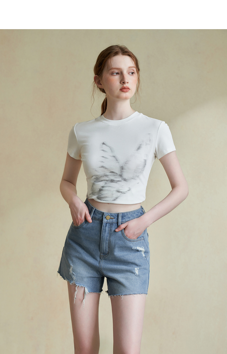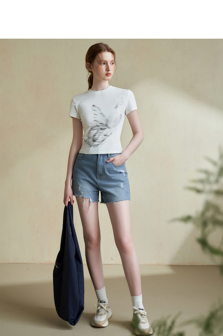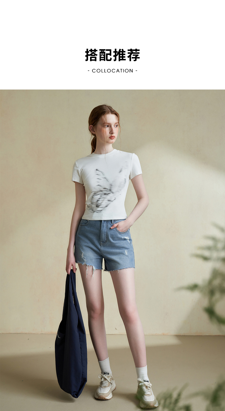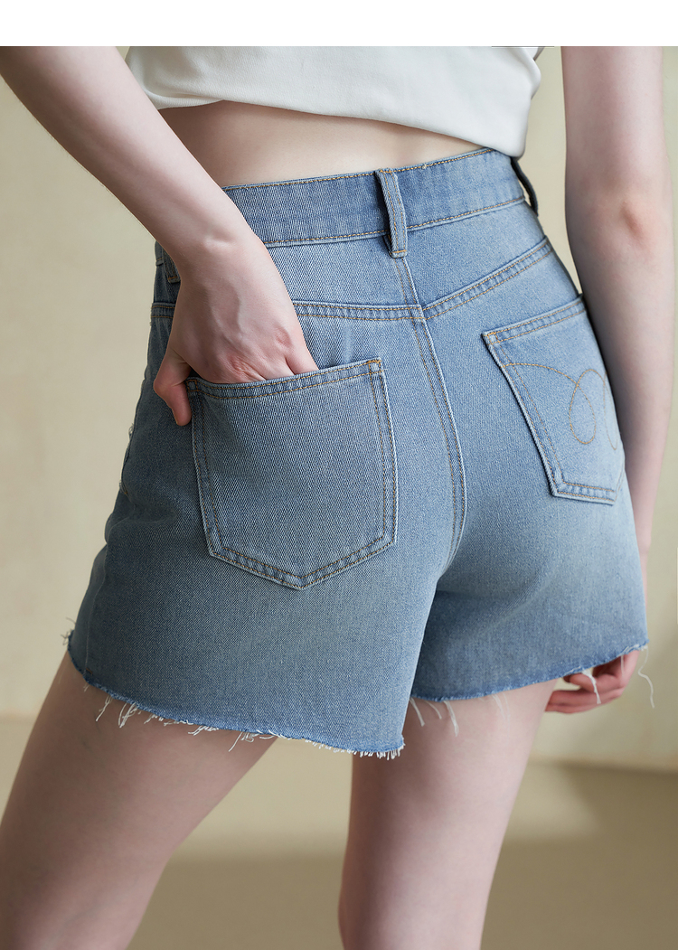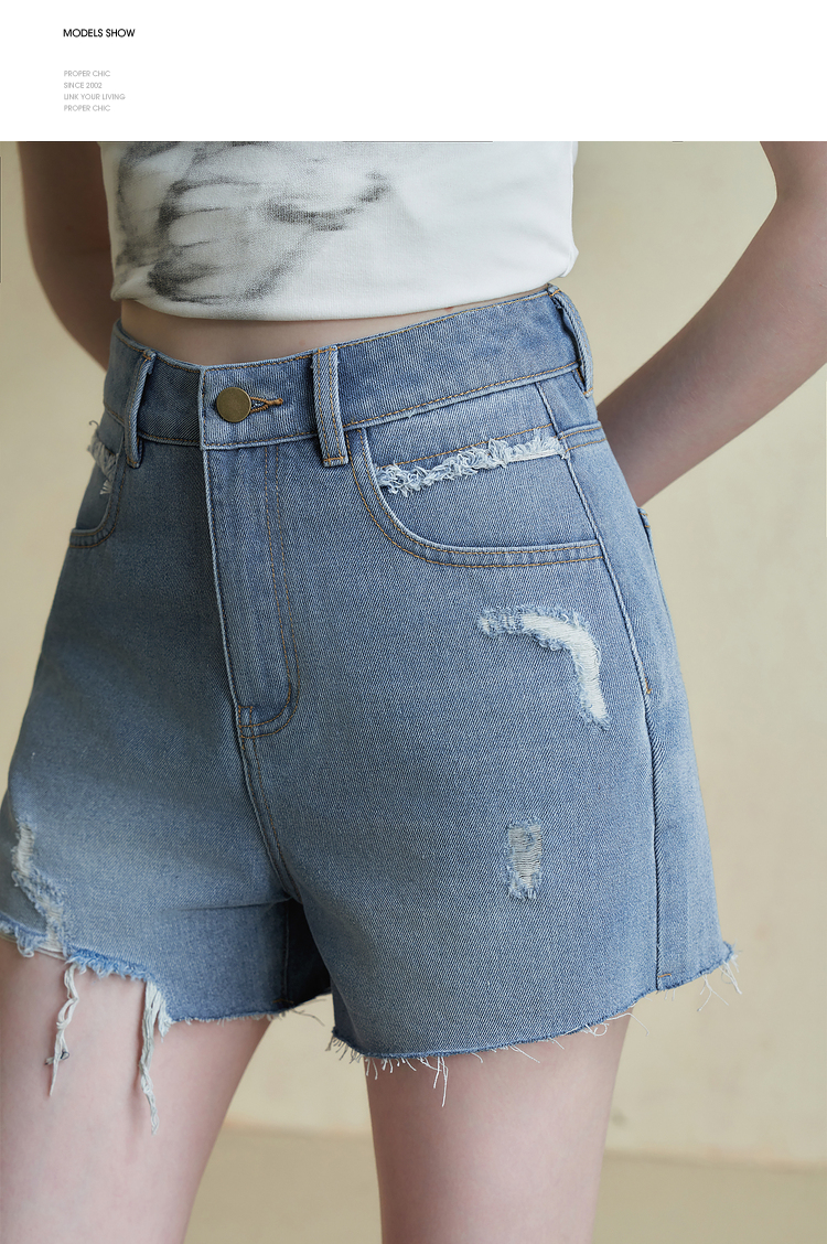 复古甜酷辣妹风牛仔裤女夏季廓形破洞毛边A字短裤V2341690