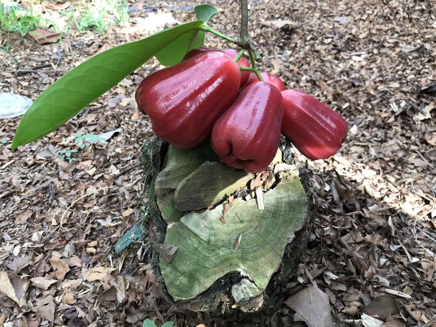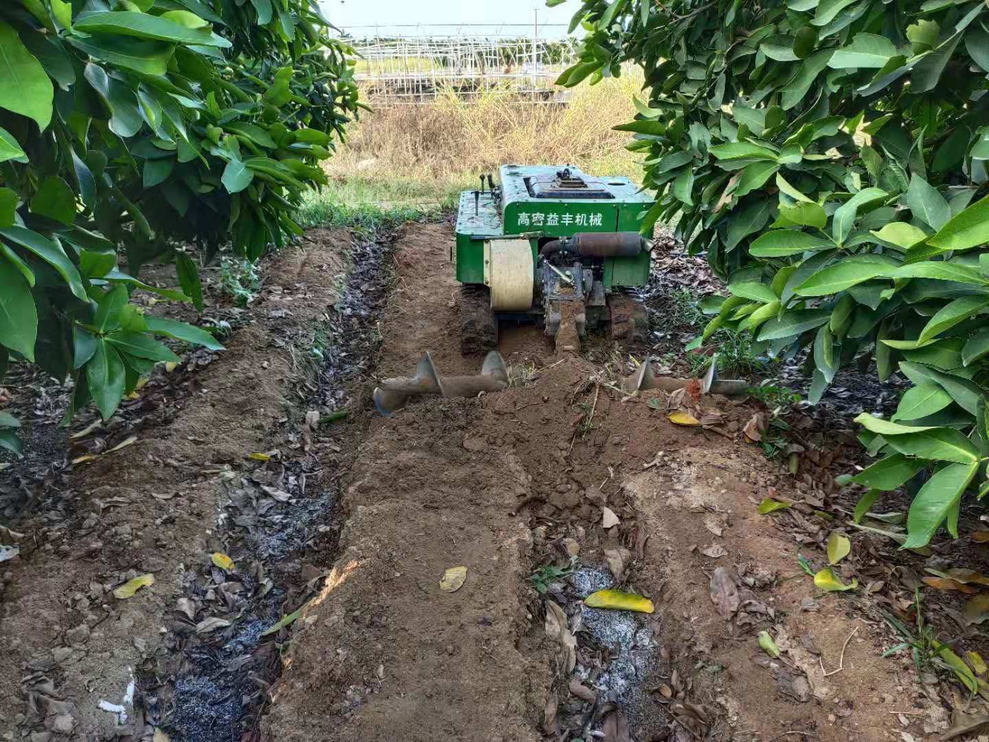 2. 同时有利于我们的机械化操作,通过机械把土地开出深沟,每年都会把树枝的枝条粉碎,粉碎以后混合有机肥农家肥一起,覆盖在果地的深沟里,给土壤增加有机质,果子口感也更硬脆。所以我们的莲雾园有机质含量是很高的。